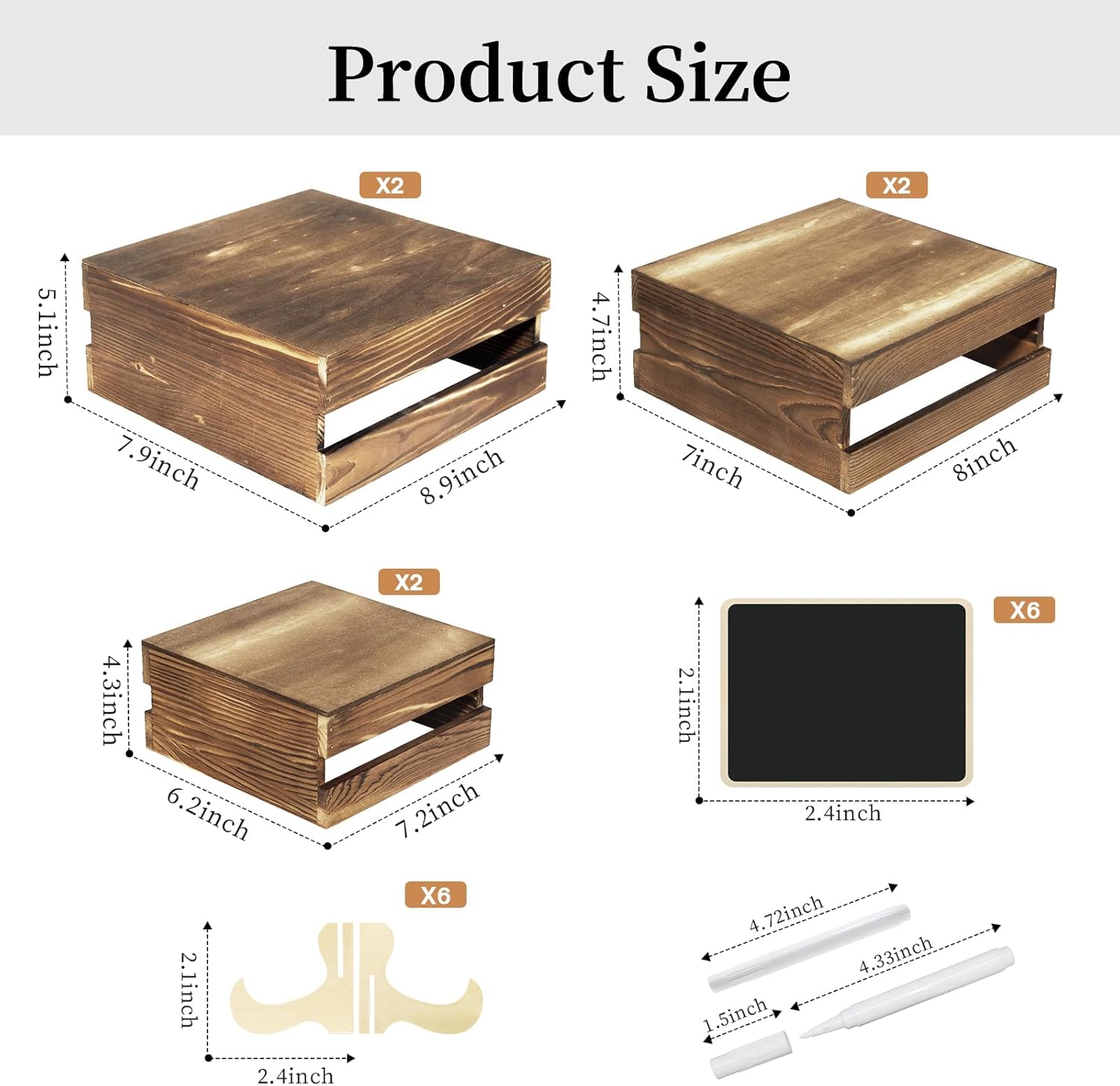 - Your Party's Sweet Companion: You will receive a set of 6 wooden cake stand risers (available in 3 sizes), 6 wooden signs and 2 pens, enough quantity and different sizes to meet the needs of different sizes of cakes, snacks and desserts for display. The wooden signs can be used to write down hints for ease of use while adding elegance to your dessert table.These wooden stackable display boxes will not take much displaying space