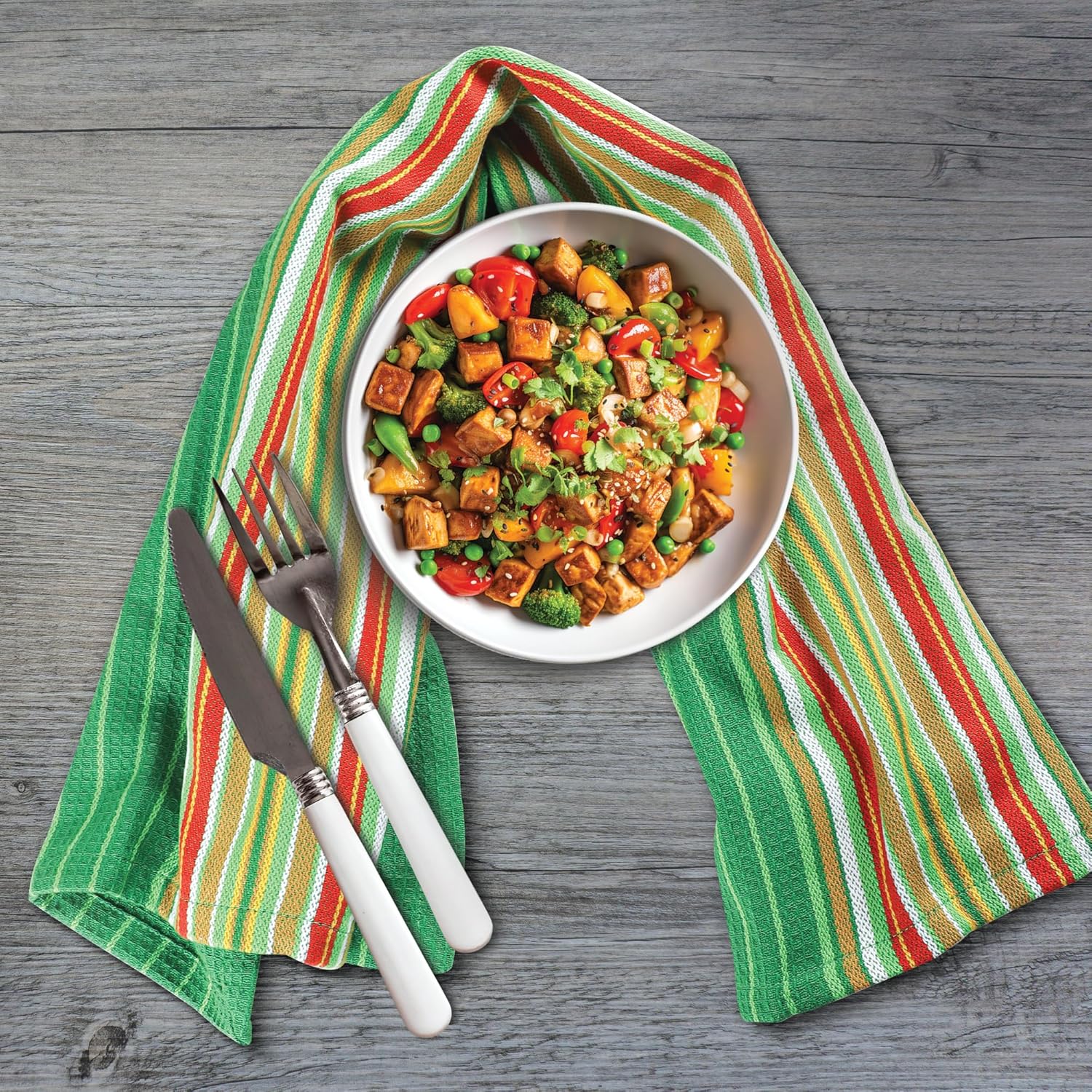Urban Villa Salsa Stripe KitchenTowels 100% Cotton Dish Towels for Kitchen Multi Color Highly Absorbent Multi-Purpose Waffle Dish Cloths for Cleaning Soft Hand Bar Towels 20x30 Inches (Set of 8)