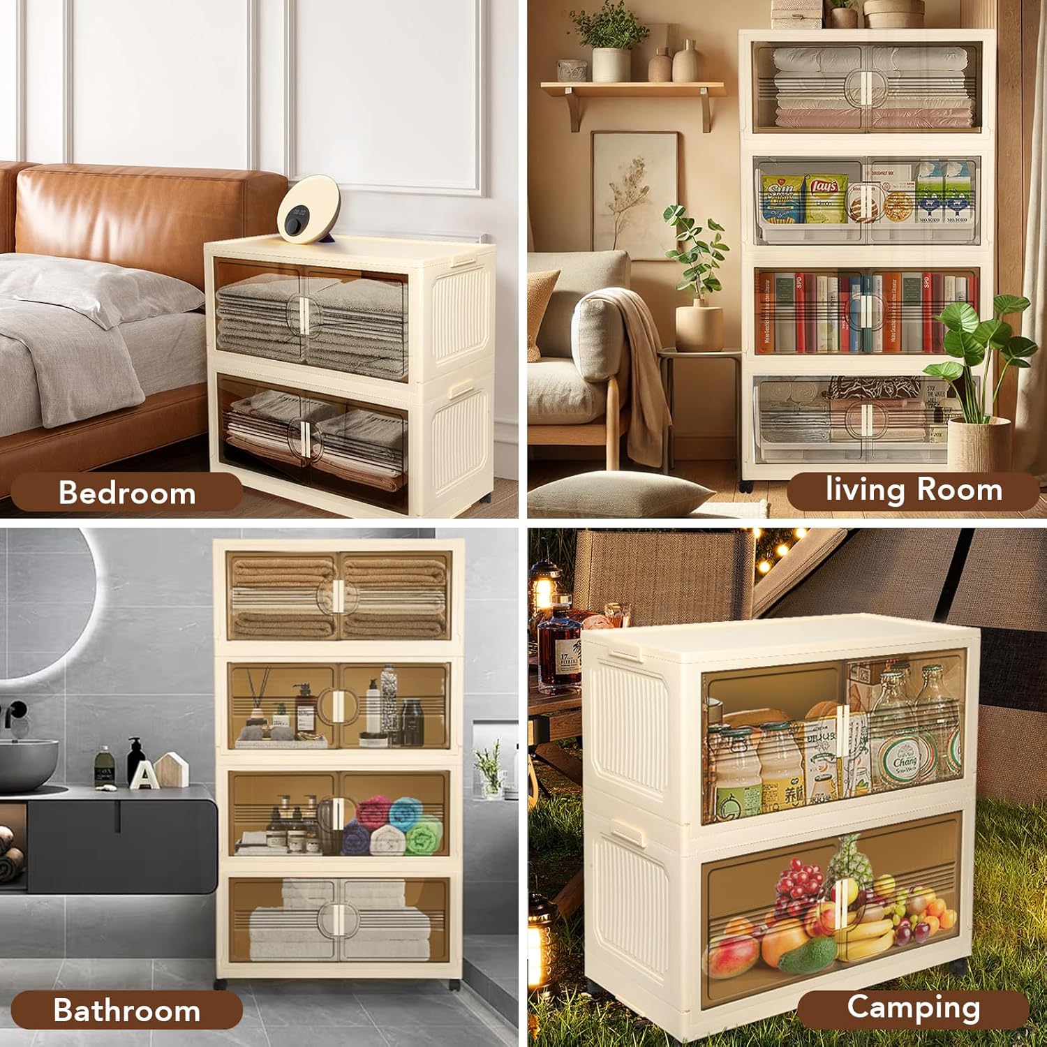 - 【Stackable & Easy Installation】The collapsible storage box with Doors is a new storage organizer with a stackable design that can be folded away on all sides when not in use, transforming the storage cube into a flat panel for easy storage under the bed or trunk.