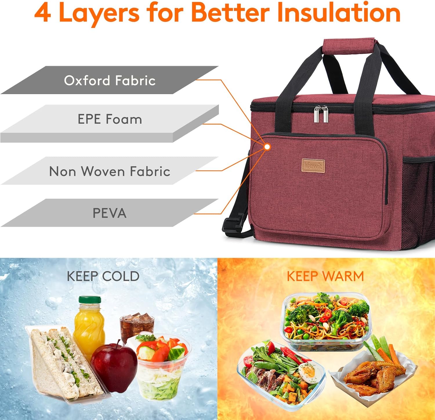 Lifewit Large Lunch Bag Insulated Lunch Box Soft Cooler Cooling Tote for Adult Men Women, Burgundy 40-Can (24L)