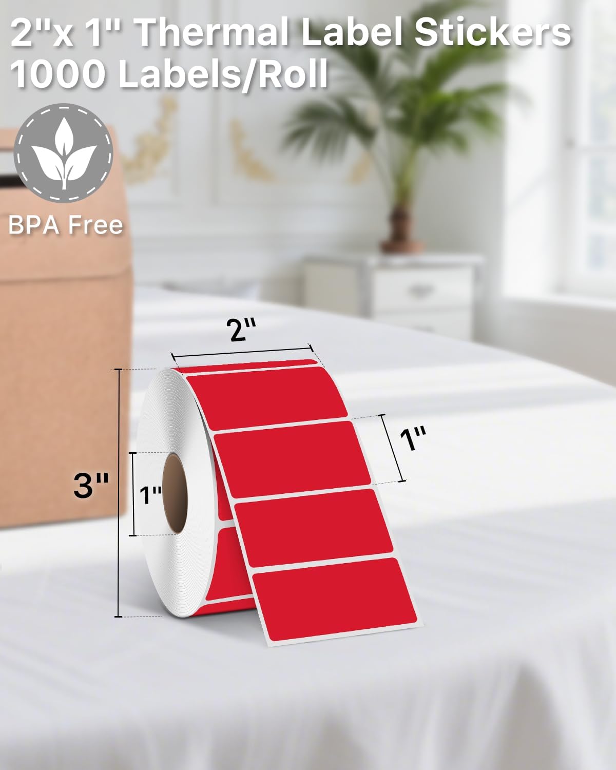 iEager 2x1 Inch Thermal Labels, Red Rectangle Thermal Printer Stickers, Durable Shipping Label Printer Sticker for Barcode, Name, Address, 1000 Labels/Roll