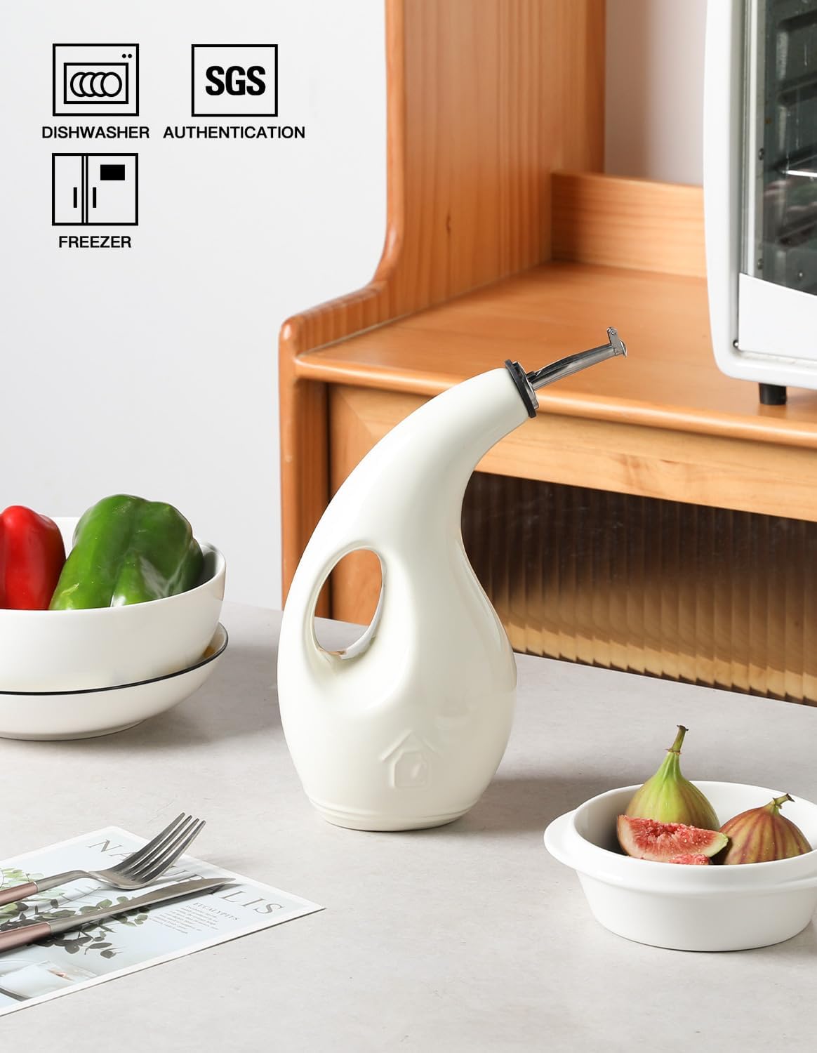 - Leak Proof & Keep Liquid Fresh - The bottle is made of durable ceramic that creates a smooth glaze. And the opaque porcelain bottle protects the oil from light and makes it last longer.