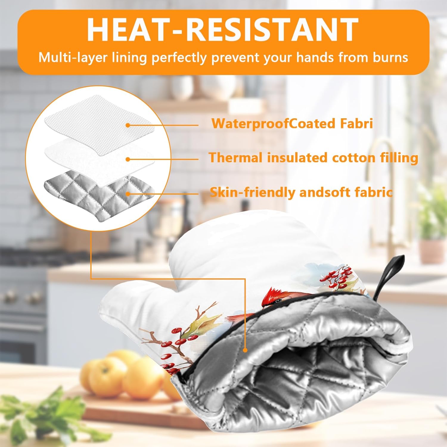 - 【Material】:The Kitchen decor oven mitts and pot holders sets are made of heat insulation polyester fabric, soft quilted cotton lining making