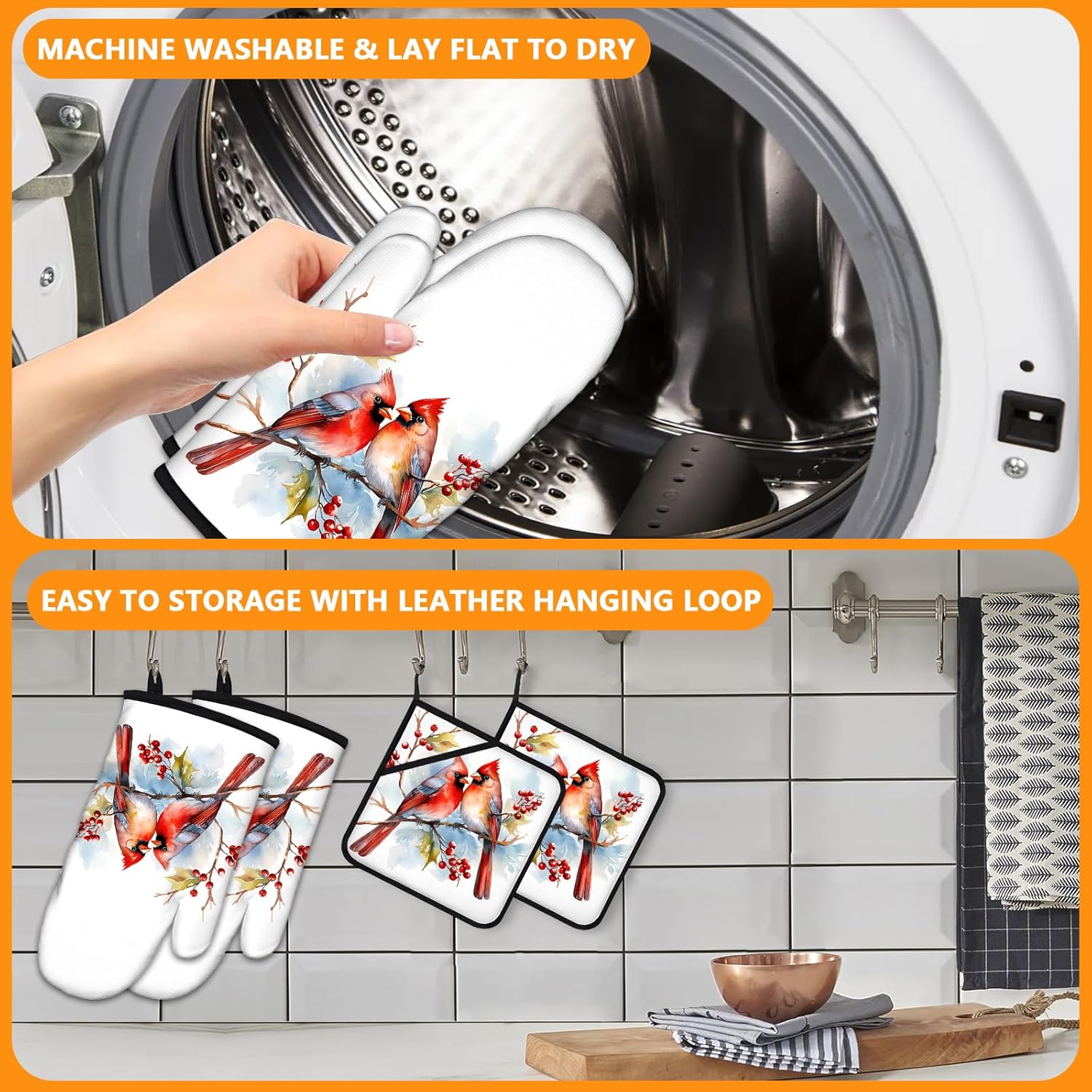 - 【Easy Storage】: pot holders side lanyard design, can be hung on hooks, cabinets or storage cabinets.
