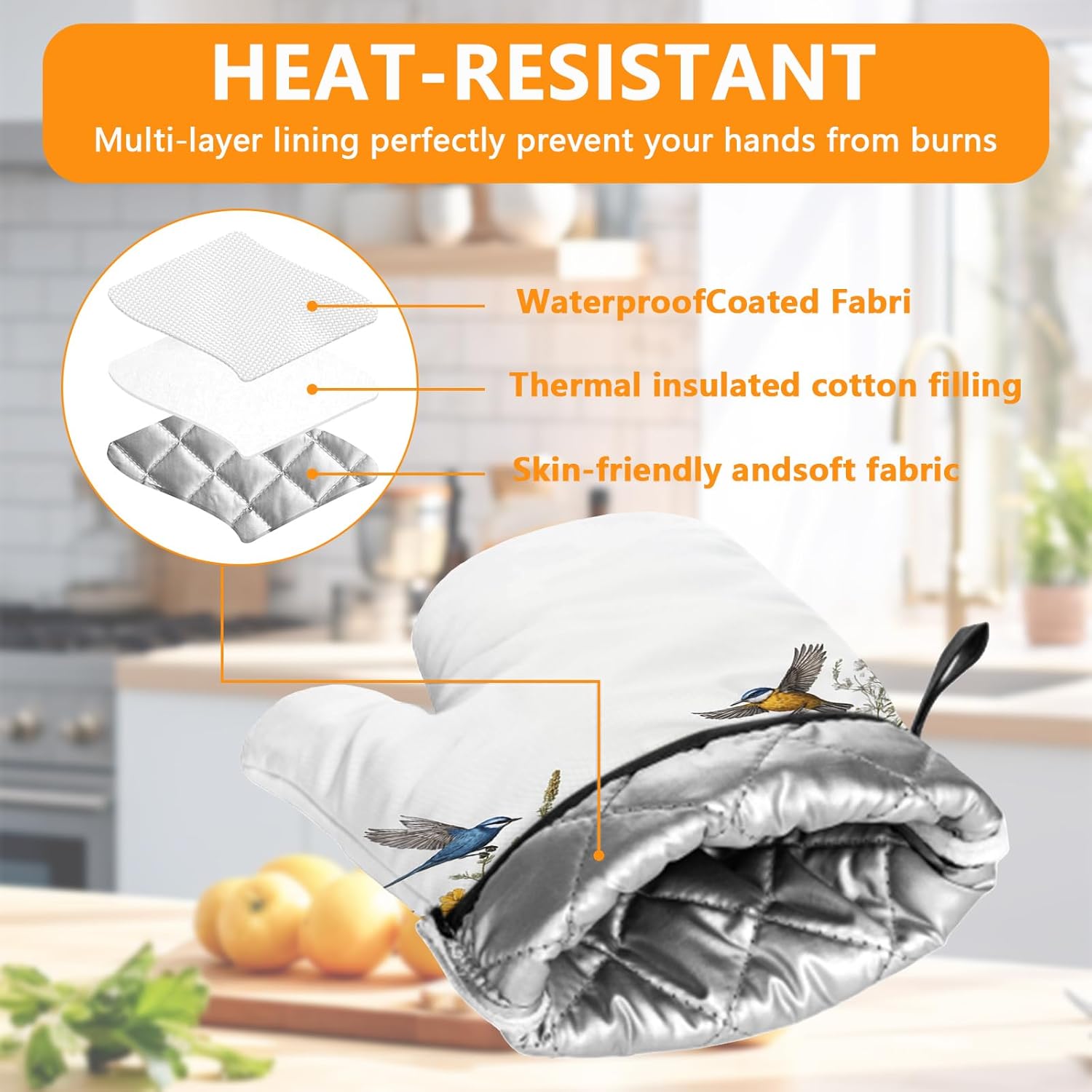 - 【Material】:The Kitchen decor oven mitts and pot holders sets are made of heat insulation polyester fabric, soft quilted cotton lining making
