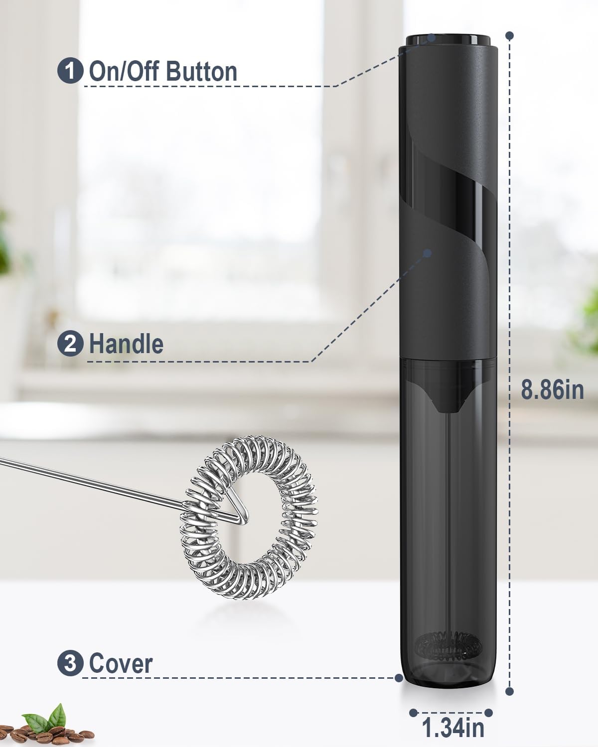- Easy to Use and Clean: Simply press the button to start frothing and effortlessly create rich, creamy foam. Cleanup is a breeze - just put the stainless-steel whisk under water and turn it on.