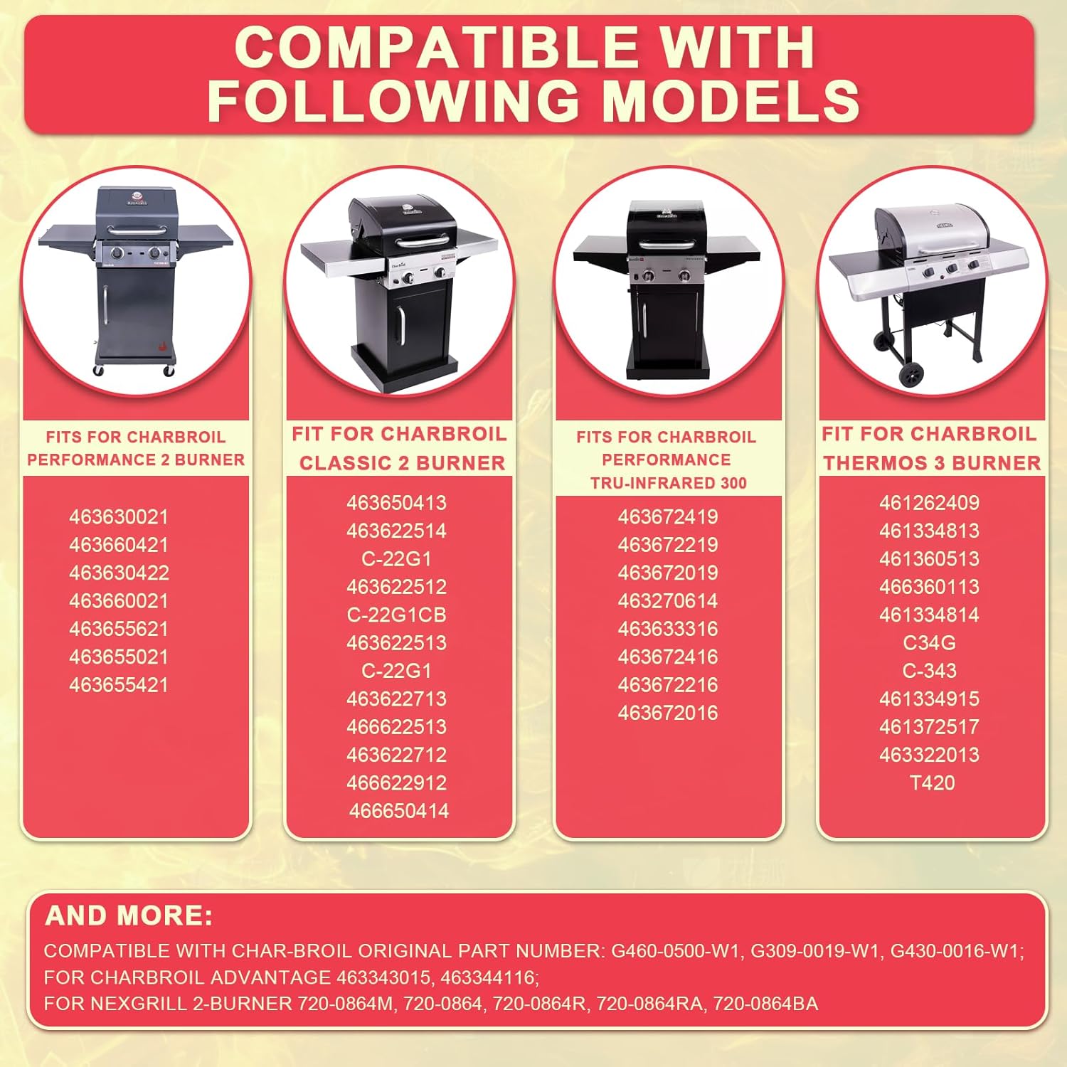 - Built to Last: Crafted from heavy-duty carbon steel, our griddle is not only non-stick but also designed to withstand the rigors of frequent use. ✅ Upgrade flat griddle top plate for Char-Broil Original Part Number G460-0500-W1 G430-0016-W1 G309-0019-W1.Grill flat top insert for Charbroil Performance TRU-Infrared 300 griddle 463672419 463672216 463270614 463672416 463633316 463672019 463672219 463672016 grill replacement parts.