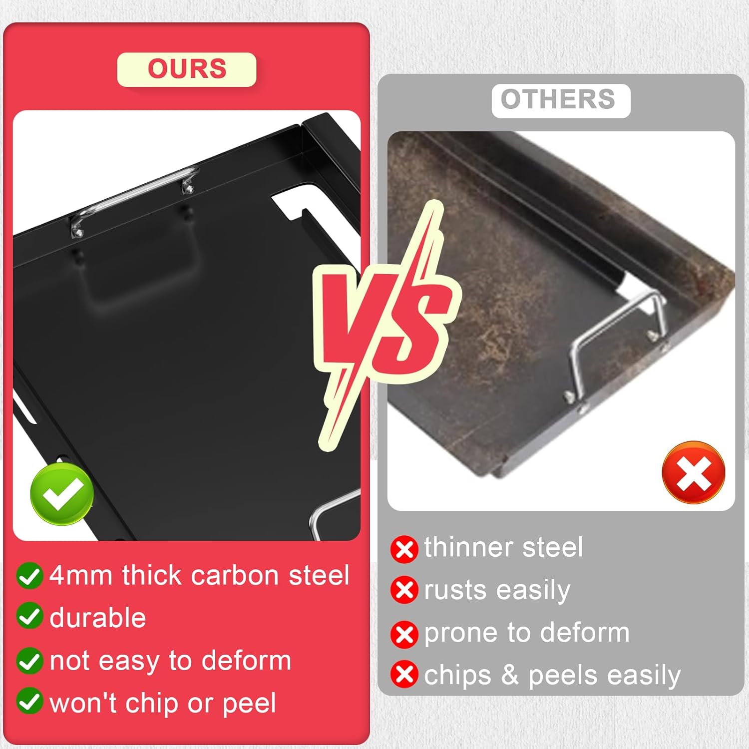 - Built to Last: Concerned about durability? Crafted from heavy-duty carbon steel, our griddle is not only non-stick but also designed to withstand the rigors of frequent use. Unlike flimsy alternatives, this robust griddle ensures you can create memorable meals without worrying about wear and tear. Invest in a solution that stands the test of time!