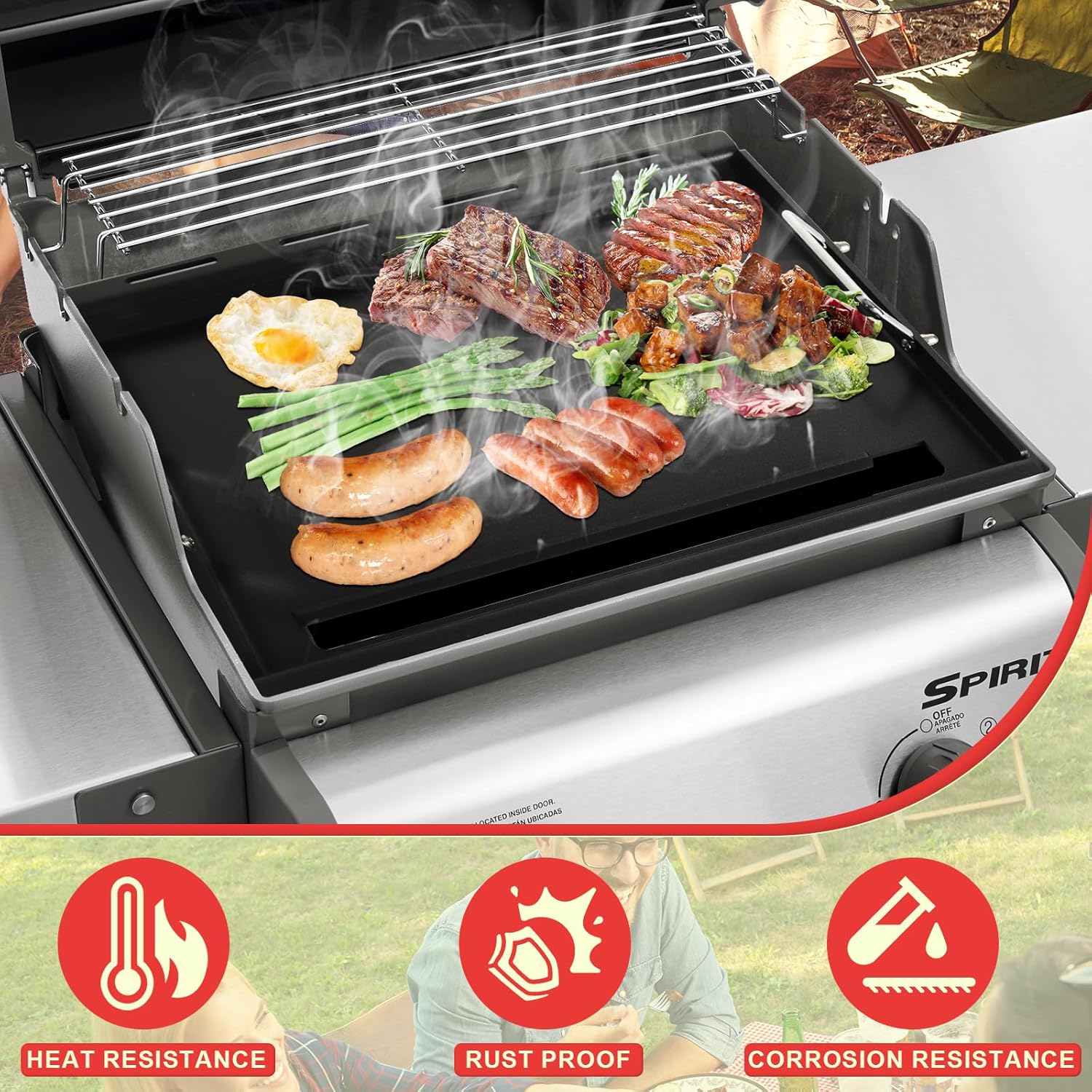 - Safe, Secure & Easy to Handle: Worried about burns or shaky griddles? Integrated side handles let you lift and reposition the plate safely, even with oven mitts.The snug fit prevents wobbling during cooking, and the raised edges keep grease from dripping into your grill. Upgrade flat griddle top plate for weber spirit 2-burner gas grill 47100001 46310001 46010074 46110001 44010001 44000174 46113101 46010074 46100001 44012174 Grills parts with a griddle that stays put—no more juggling hot plates