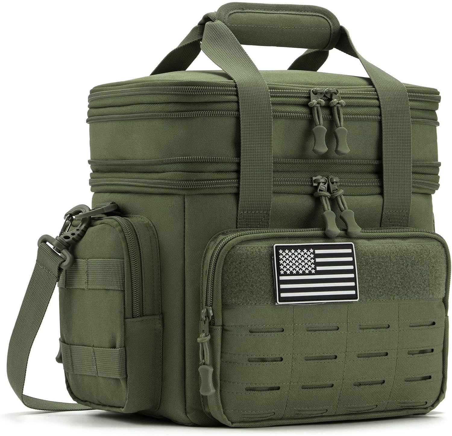 QT&QY Tactical Lunch Box for Men Expandable 18L Heavy Duty Military Insulated Cooler Bag, Leakproof Thermal Lunch Bag for Work Camping Outdoor Picnic Pail Adult Meal MOLLE Webbing Green