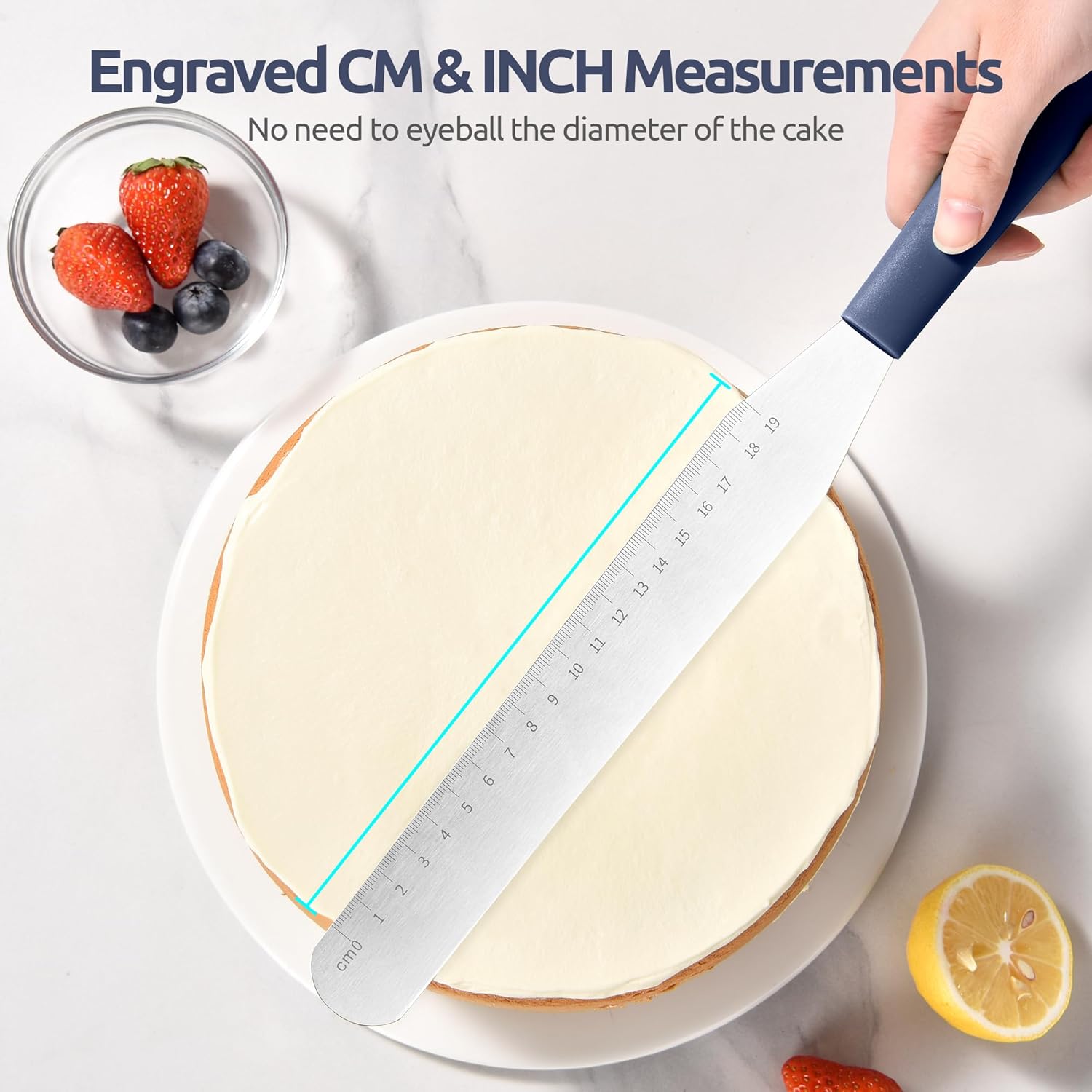 - Engraved CM & INCH Measurements: U-Taste cake frosting spatula features engraved CM & INCH measurements, ensuring you'll never have to eyeball the height and diameter of your cake. The engravings are deep and permanent, so they won't fade or wear off even after many uses and washes, providing accurate and consistent measurements every time you bake. Whether you're a seasoned professional or a novice baker, this feature enhances your confidence, enabling you to create beautifully cakes with ease.