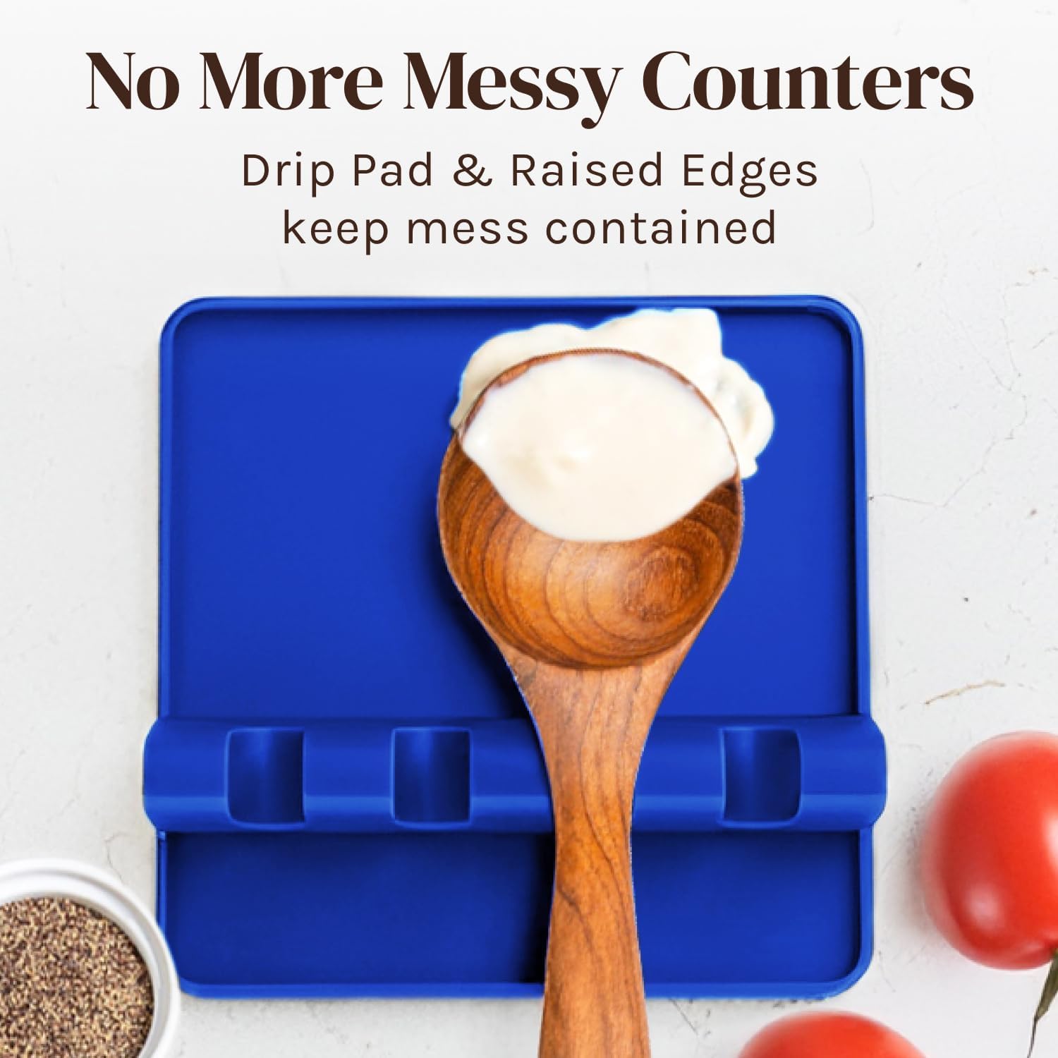 Silicone Spoon Rest for Stove Top with Drip Pad (Two Pack) - Heat Resistant BPA Free Utensil Rest & Spoon Holder for Kitchen Counter - Grill Utensil Holder - Spatula Holder, Tongs, Ladle