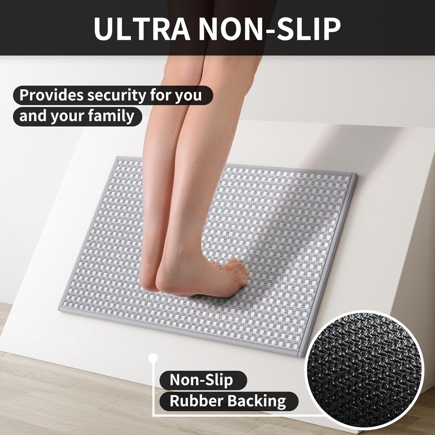 Kitchen Mats for Floor, Super Absorbent Kitchen Rugs Non Slip Washable, Rubber Backing Soft Chenille Braided Kitchen Runner Rug Standing Mat Sink Mat, Easy to Clean, Gray 17"x28"