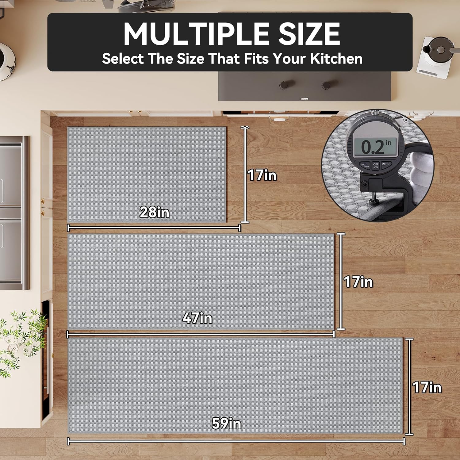 - Super Non-slip Kitchen Mat: The premium quality rubber backed kitchen mat grips the floor firmly, allowing you to stand firmly on the kitchen floor mat without slipping, and stays stable on a variety of surfaces, providing safety for your family and preventing accidental slips and falls. At the same time, the rubberized backing of the kitchen mats is waterproof and leak-proof, keeping your floors dry and clean, and preventing moisture and stains on your floors.