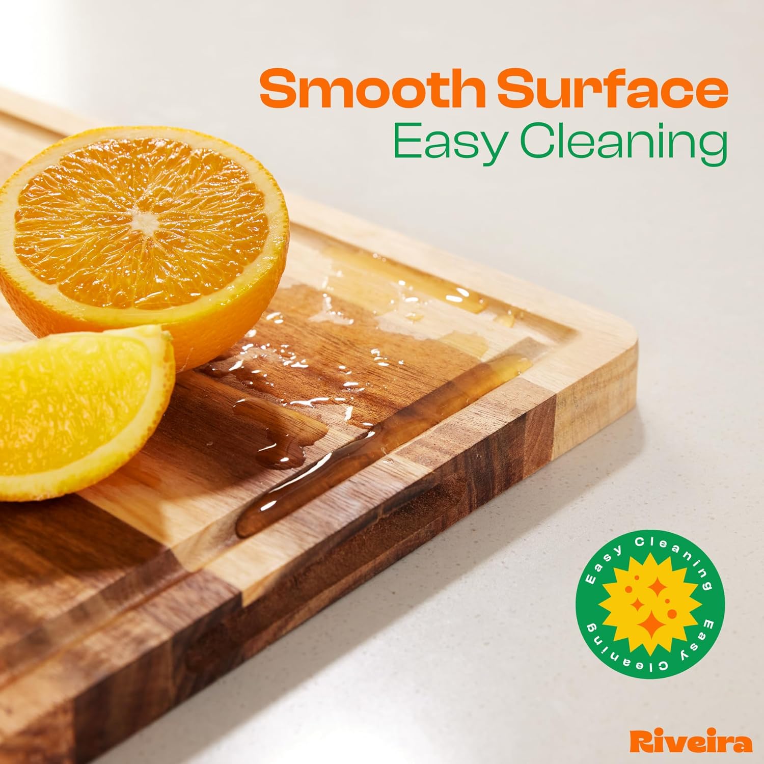 - Premium Crafted Acacia — Take a detour from traditional kitchen aesthetics with this acacia wood board crafted from 100% natural acacia. Beyond being an unconventional and eco-friendly choice, the chopping board wood proudly showcases the environment friendly and organic acacia. This wood cutting boards for kitchen counter adds an unexpected touch of confidence and style to your once-orderly culinary space. Riviera's wooden chopping boards for kitchen will be there for many years to come.