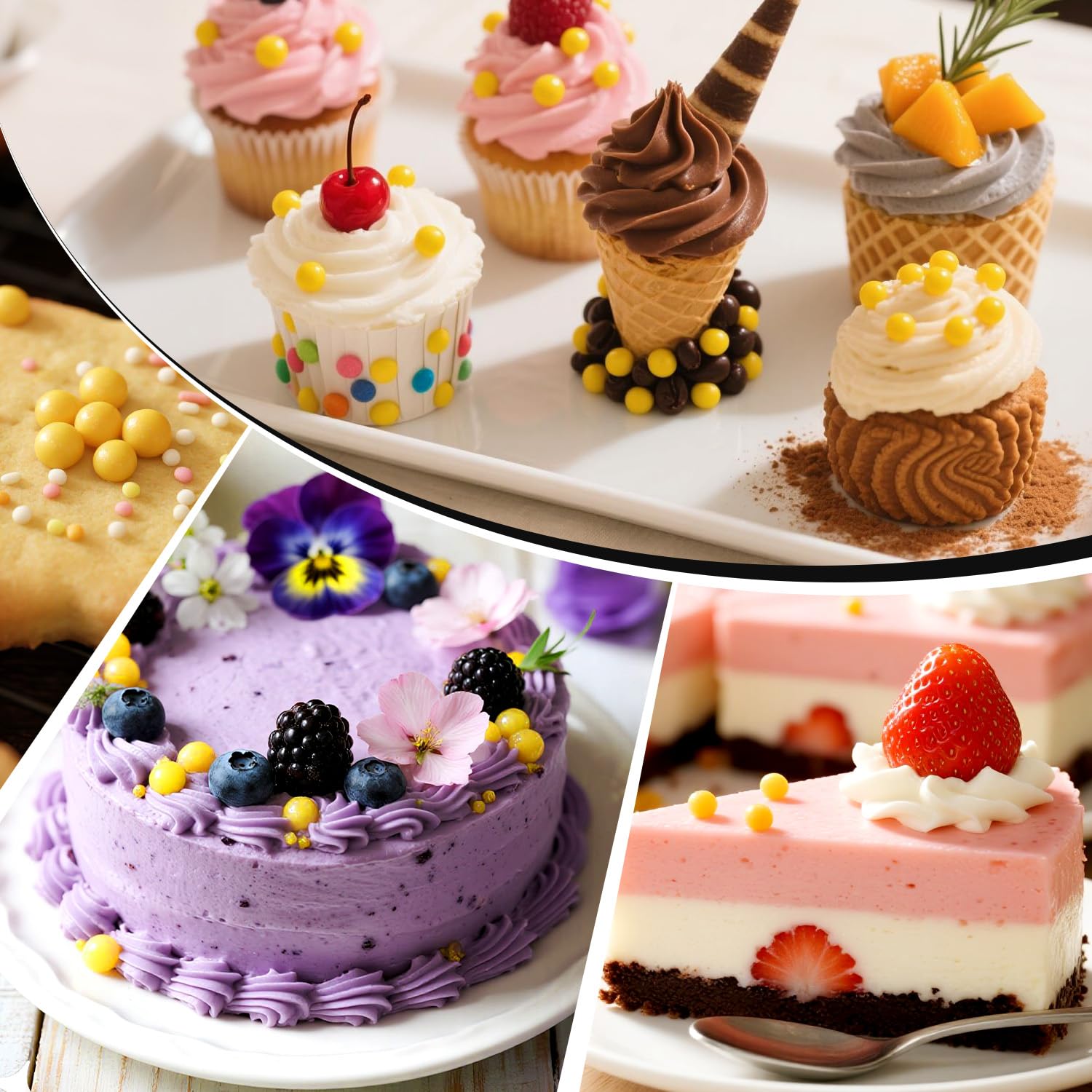 - Our Edible Yellow Pearl Sprinkles feature a unique mixed-size design. They are a natural fit for decorating birthday cakes, cupcake toppers, donuts, cookies, ice cream, waffles to turn them into a party showstopper.