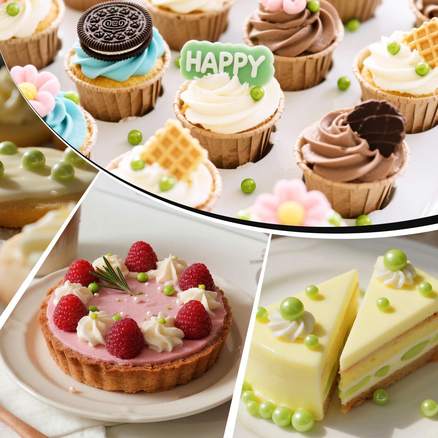 - These Edible Green Pearl Sprinkles feature a mixed-size design. They are a perfect match for cakes, cupcake toppers, donuts, decorating cookies, ice cream, waffles, and any dessert you can imagine to turn them into a baking delight.
