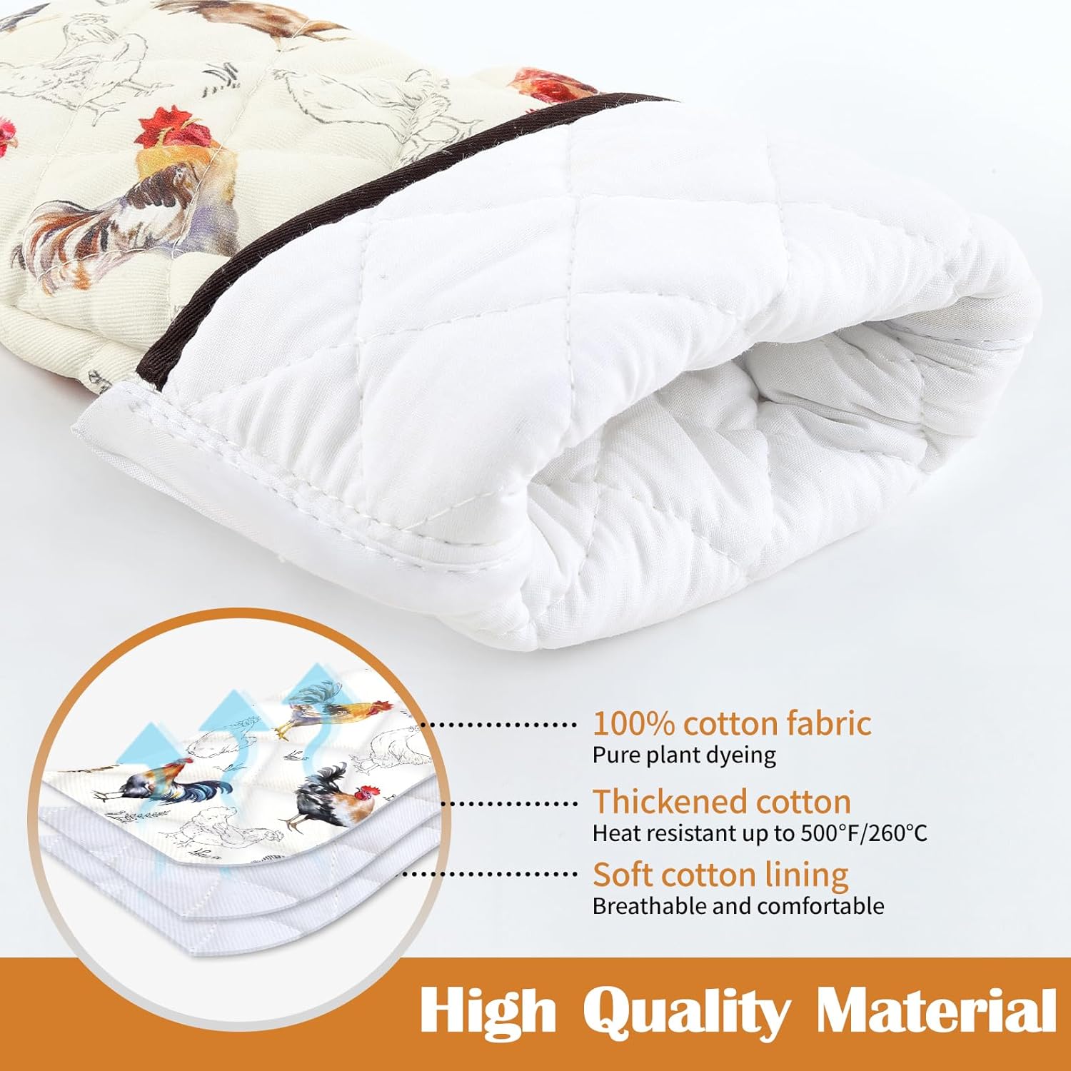 Roosters Oven Mitts and Pot Holders Sets 2Pcs, 100% Cotton Heat Resistant, Extra Long Oven Gloves Potholder for Kitchen Cooking Baking Decoration
