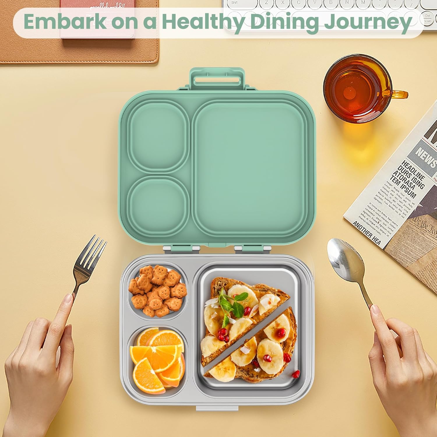- 100% LEAKPROOF & AIRTIGHT DESIGN: Silicone-sealed compartments lock in liquids and odors—perfect for sandwich, bread, cookie, or fruit snacks. Toss it in your bag worry-free, guaranteed no spills!