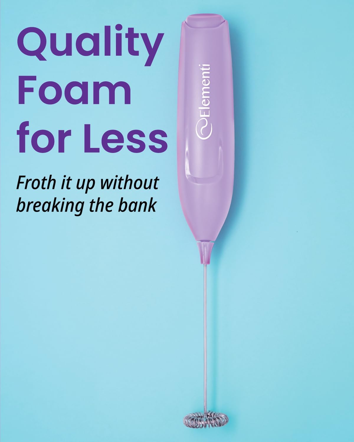 Elementi Powerful Frother Wand – Lightweight Milk Frother & Drink Mixer Handheld, Matcha Whisk for Dreamy Lattes, Powerful Coffee Mixer Wand & Blender Stirrer for Creamy Cappuccinos at Home (Lavender)