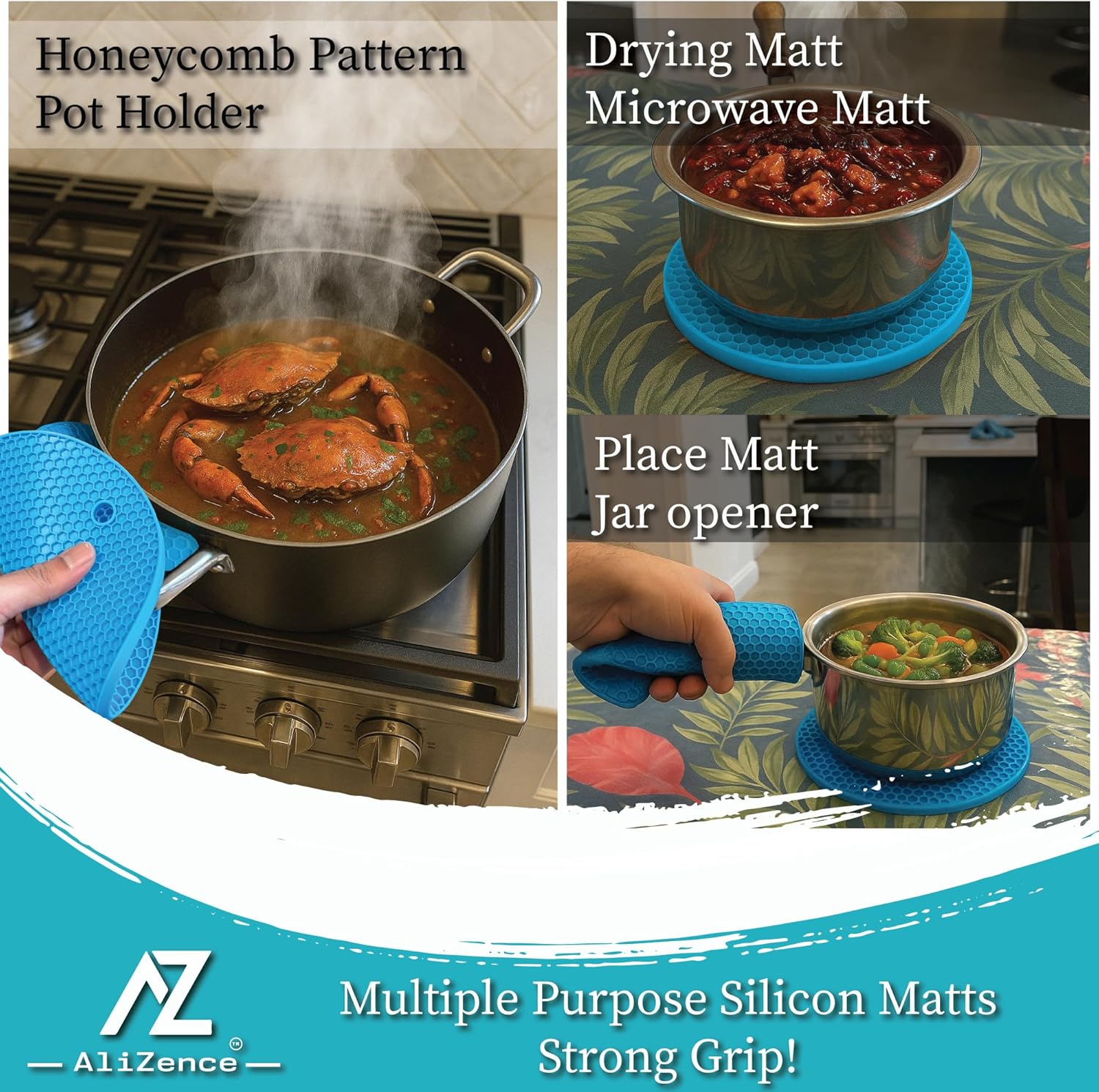 - Eco-Friendly & Safe: Sustainability is a core focus of the AliZence Kitchen Essentials 6-Piece Set. Made from non-toxic, BPA-free silicone, offering an environmentally responsible and safe solution for your kitchen. 100% Money Back Gurantee!
