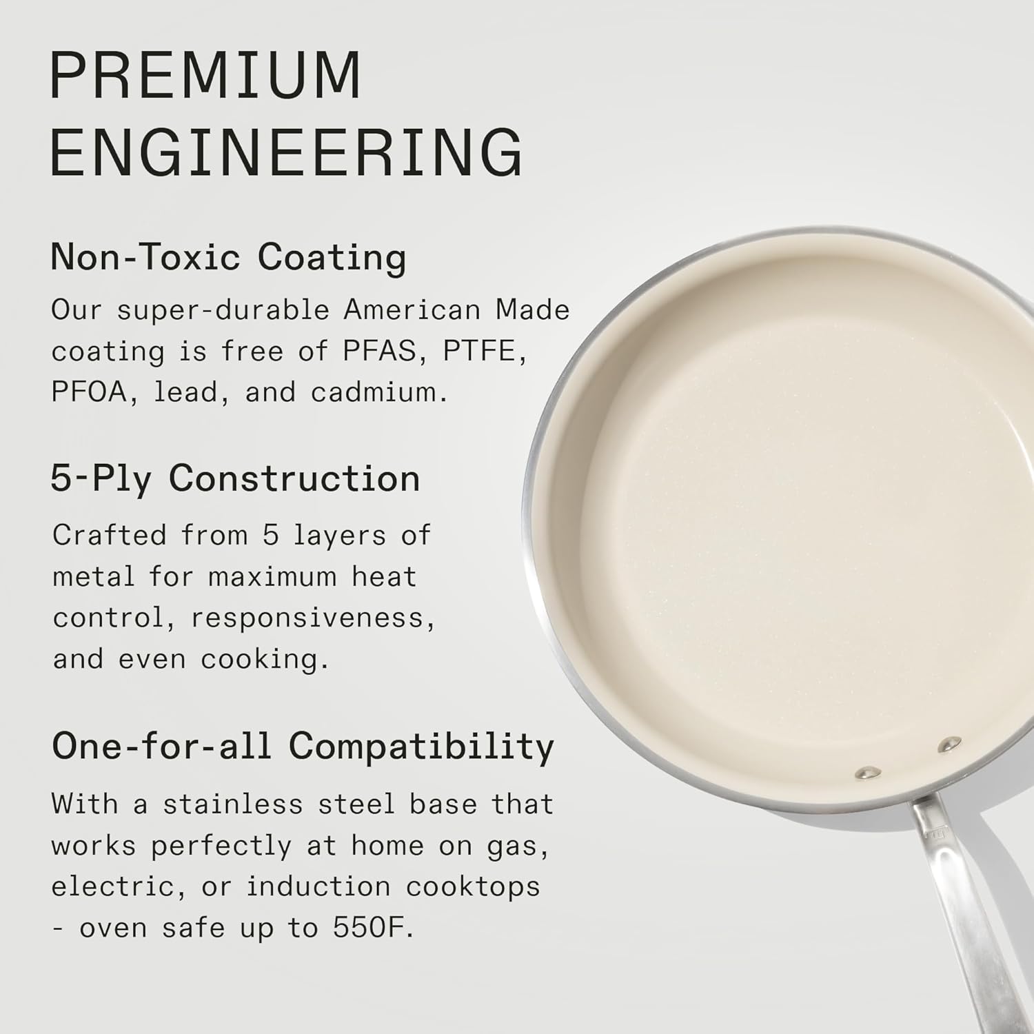 - High-Performance Ceramic Coating - Our super-durable ceramic coating is free of PFAS, PTFE, PFOA, lead, and cadmium