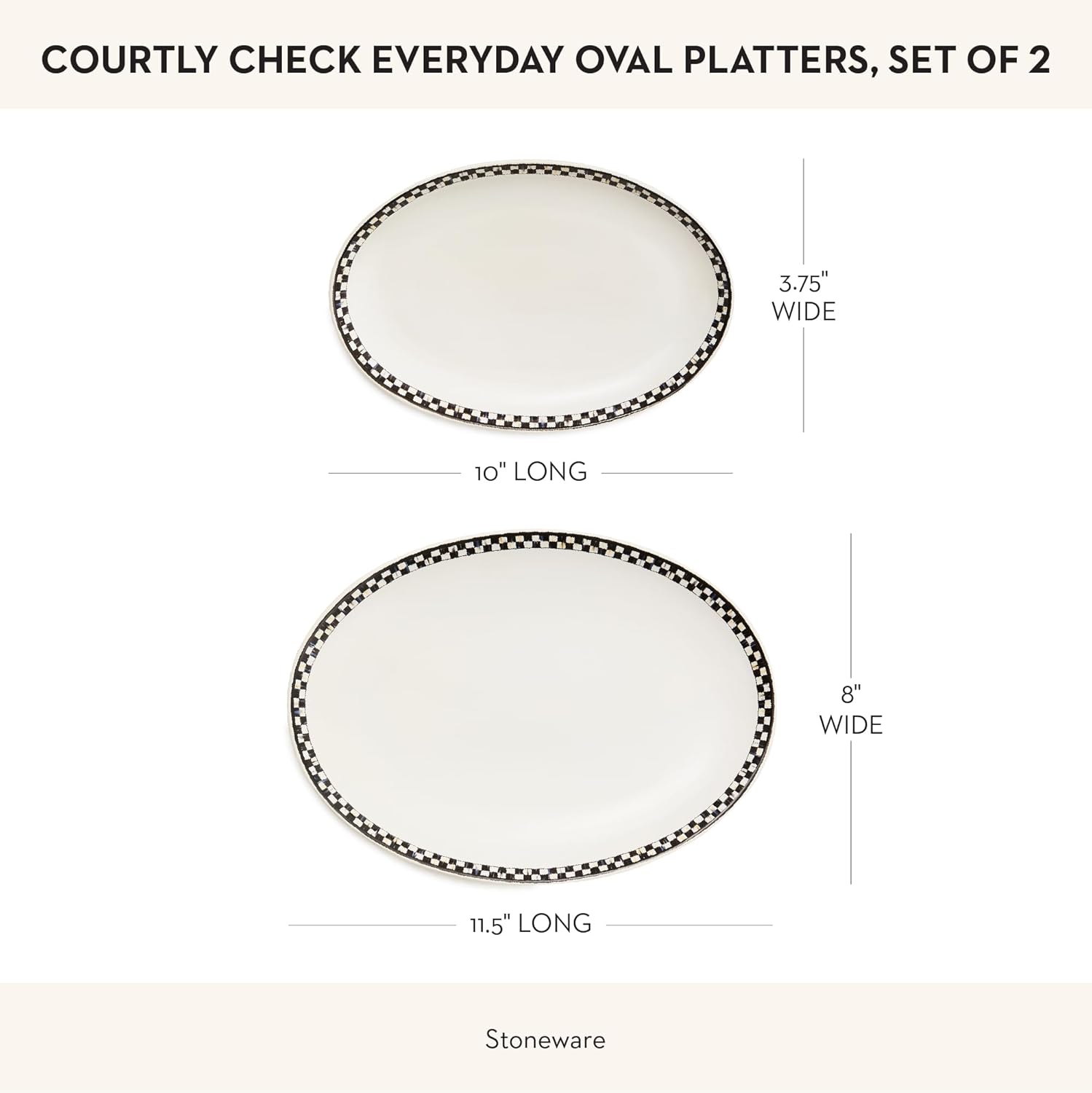 - ELEGANT SERVING ESSENTIALS: Each Courtly Check Everyday stoneware platter is dishwasher-safe and microwave-safe. The classic white body is rimmed with hand-applied black-and-white Courtly Check transfers.
