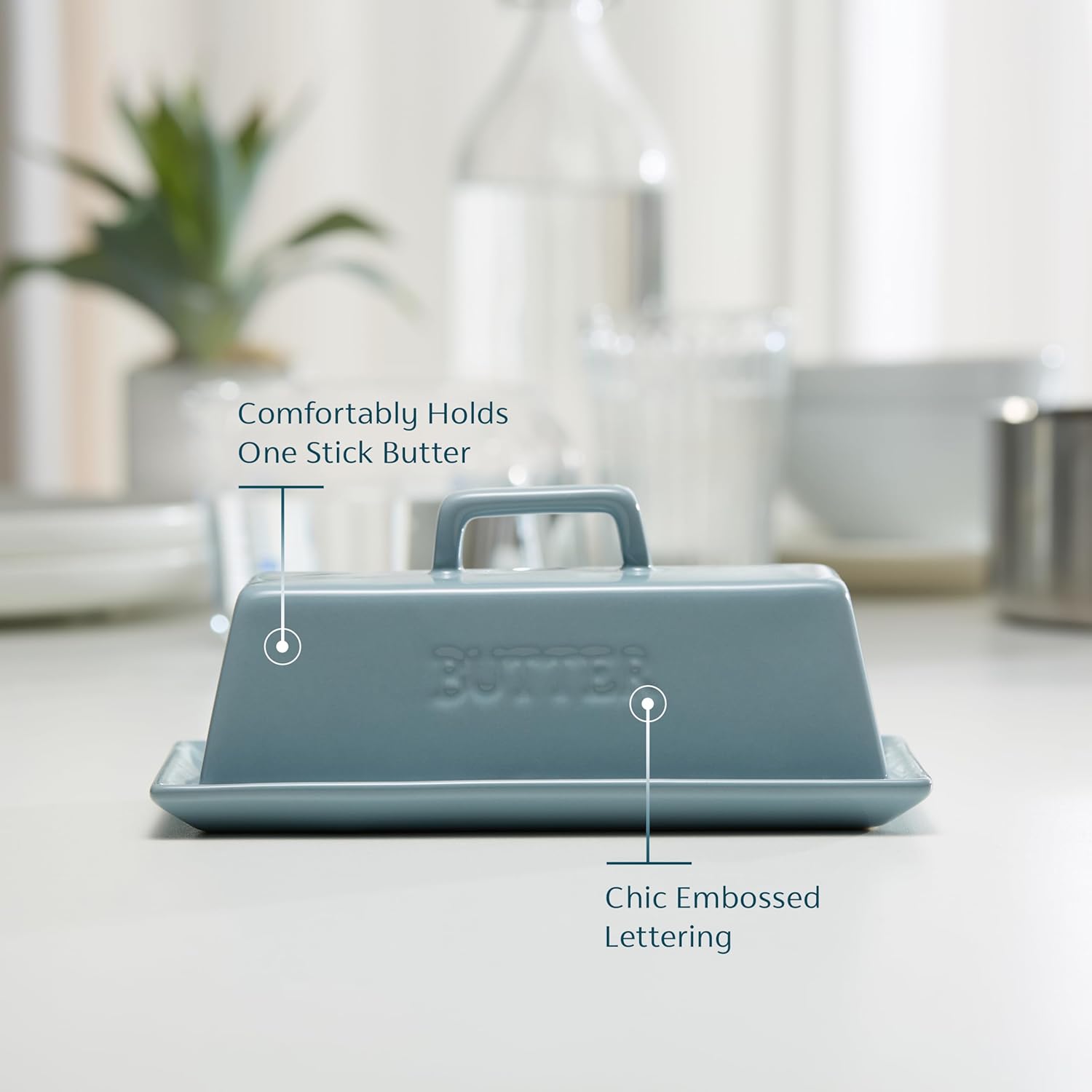 - Durable Ceramic: Classic, sturdy, and holds one standard stick. Pop into the microwave to soften butter and right into the dishwasher for easy cleanup.