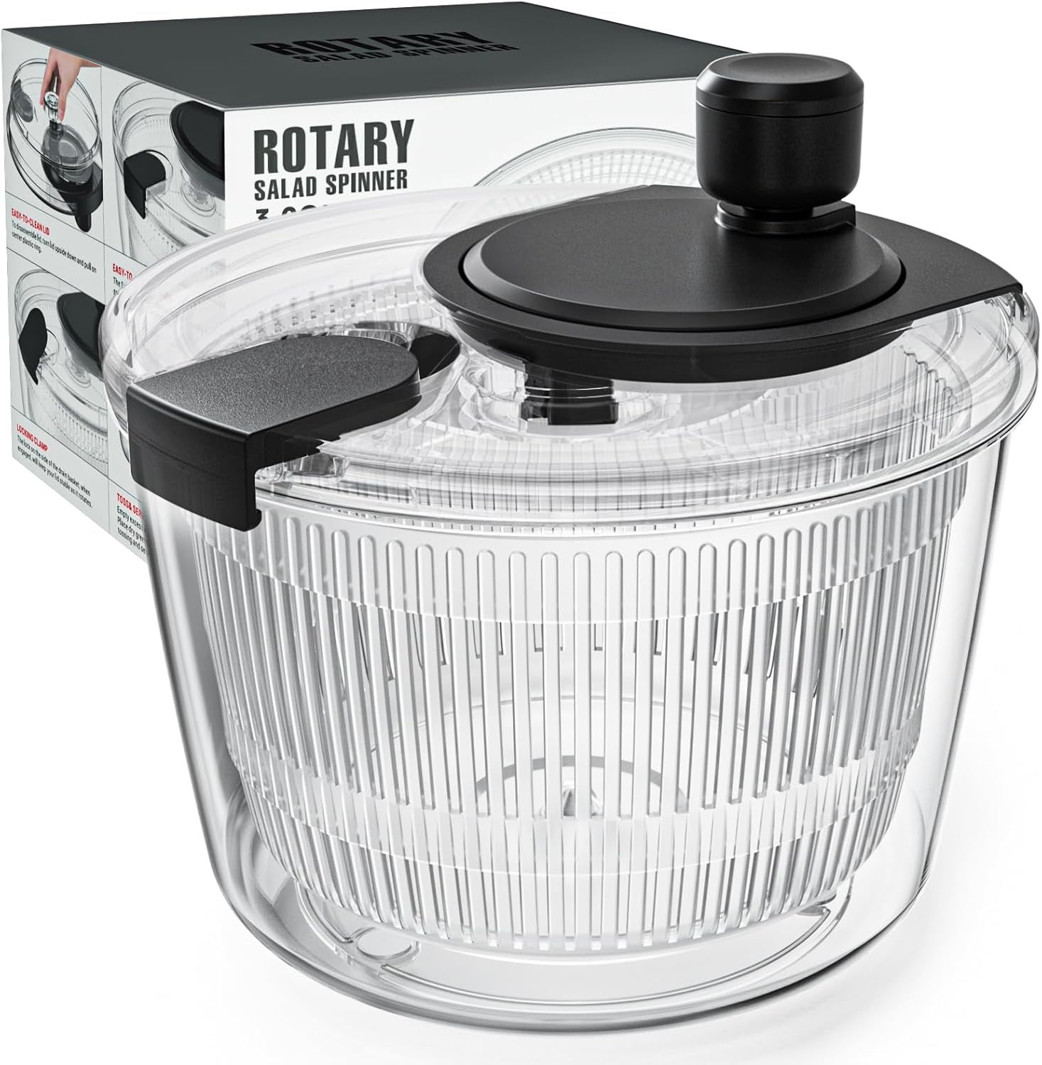 - Easy operation: The salad spinner is easy to operate, you just need to easily rotate the spin knob to dries and washes your greens in high rotation speed, simple, convenient and quick to get crisp vegetables