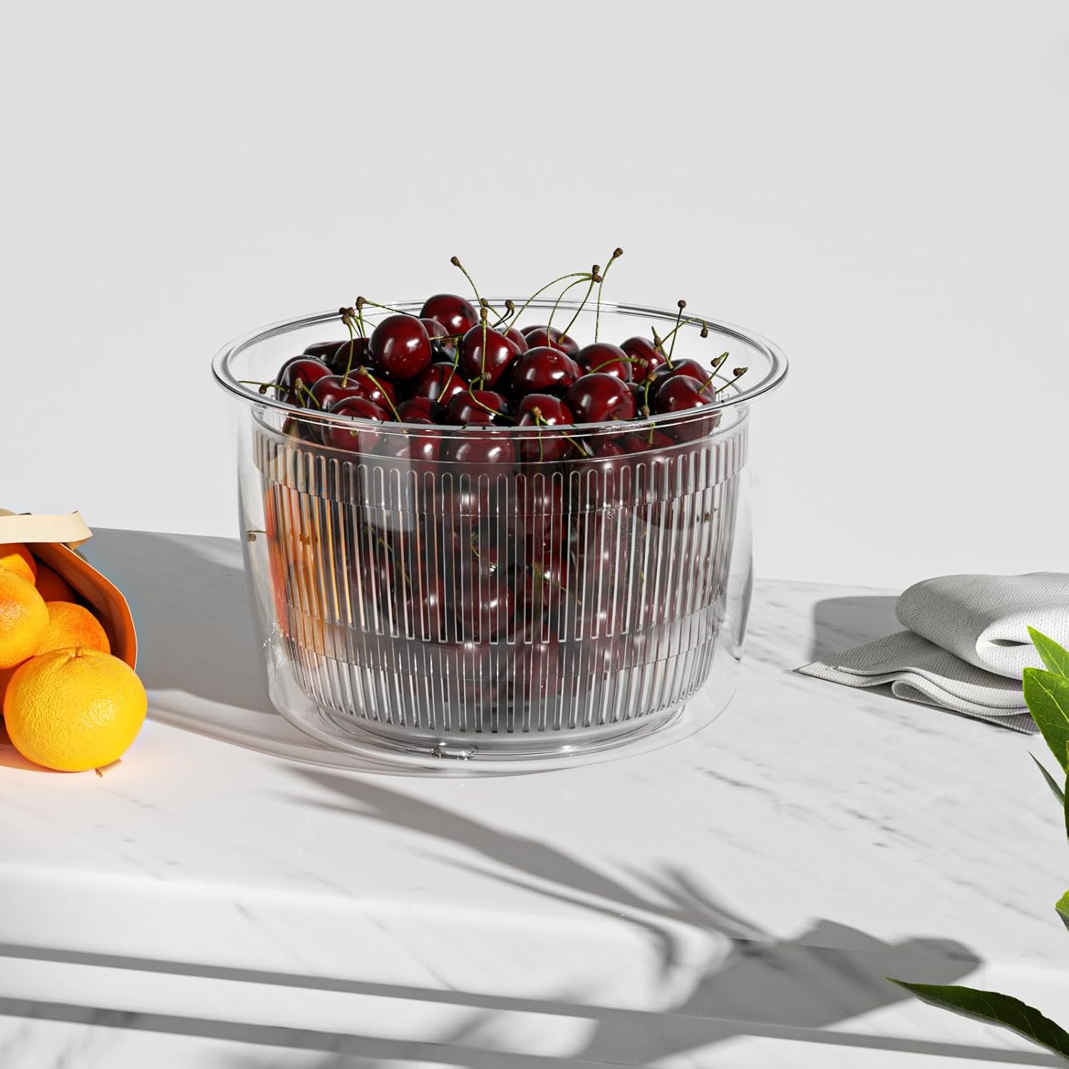- Convenient & Space Saving: The Salad spinner comes with a 3Qt bowl and a separate colander; You can process enough salad greens or fruits at once in one device, as a container it also save your kitchen space.