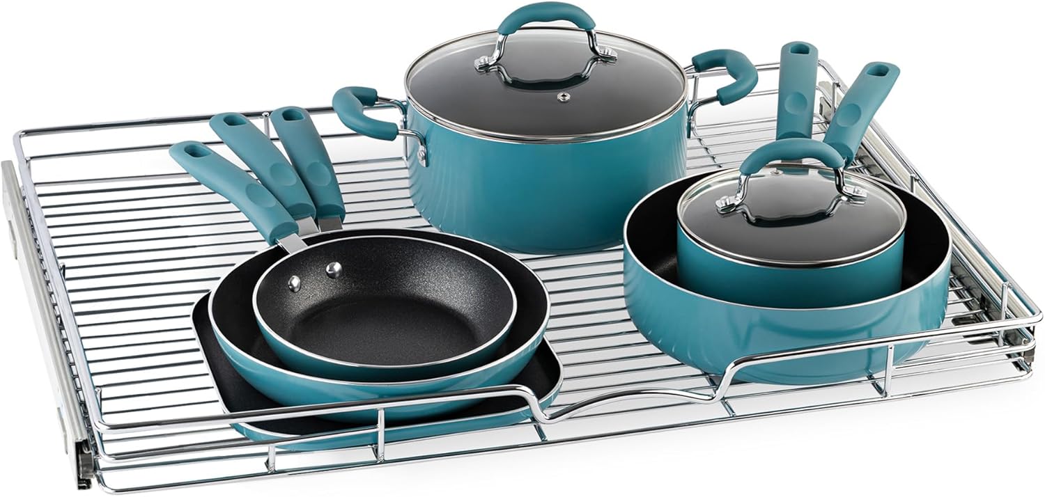 - SMOOTH SLIDE-OUT DRAWER: This kitchen cabinet roll out shelf is manufactured with a pull out system that slides out ultra-smooth. Other than other drawer organizers, our Pull Out Cabinet shelf slides out all the way, providing you with easy access.
