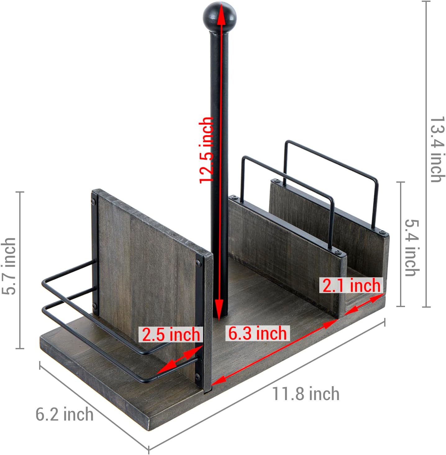 MyGift All-in-One Paper Towel Holder Kitchen Caddy, Vintage Gray Solid Wood and Industrial Matte Black Metal Dining Combo Rack with Paper Towel Dispenser, Napkin Holder, and Spice Rack