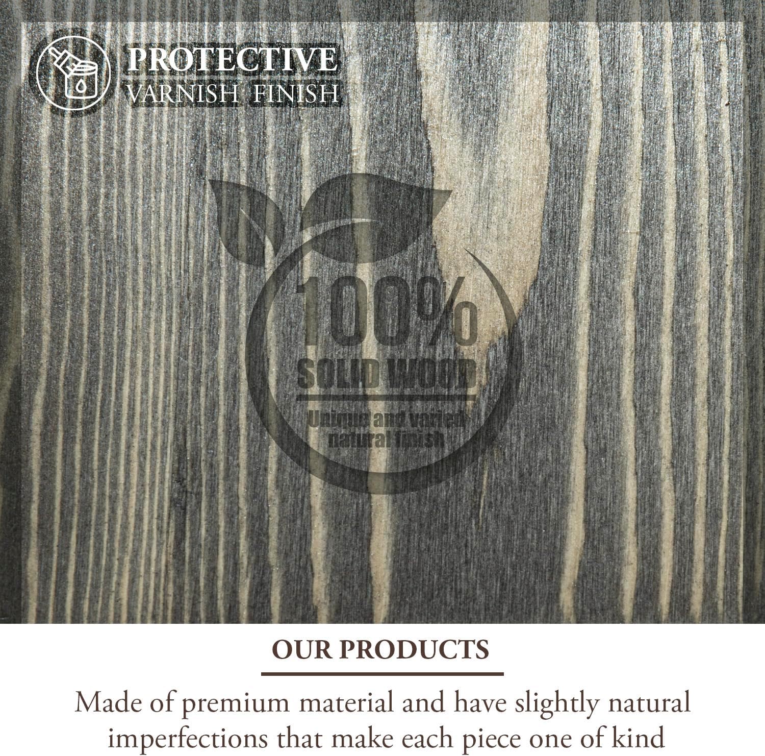 - Crafted with vintage gray solid wood and industrial matte black metal, this caddy offers durability and a stylish aesthetic that complements modern, rustic, or industrial decor.