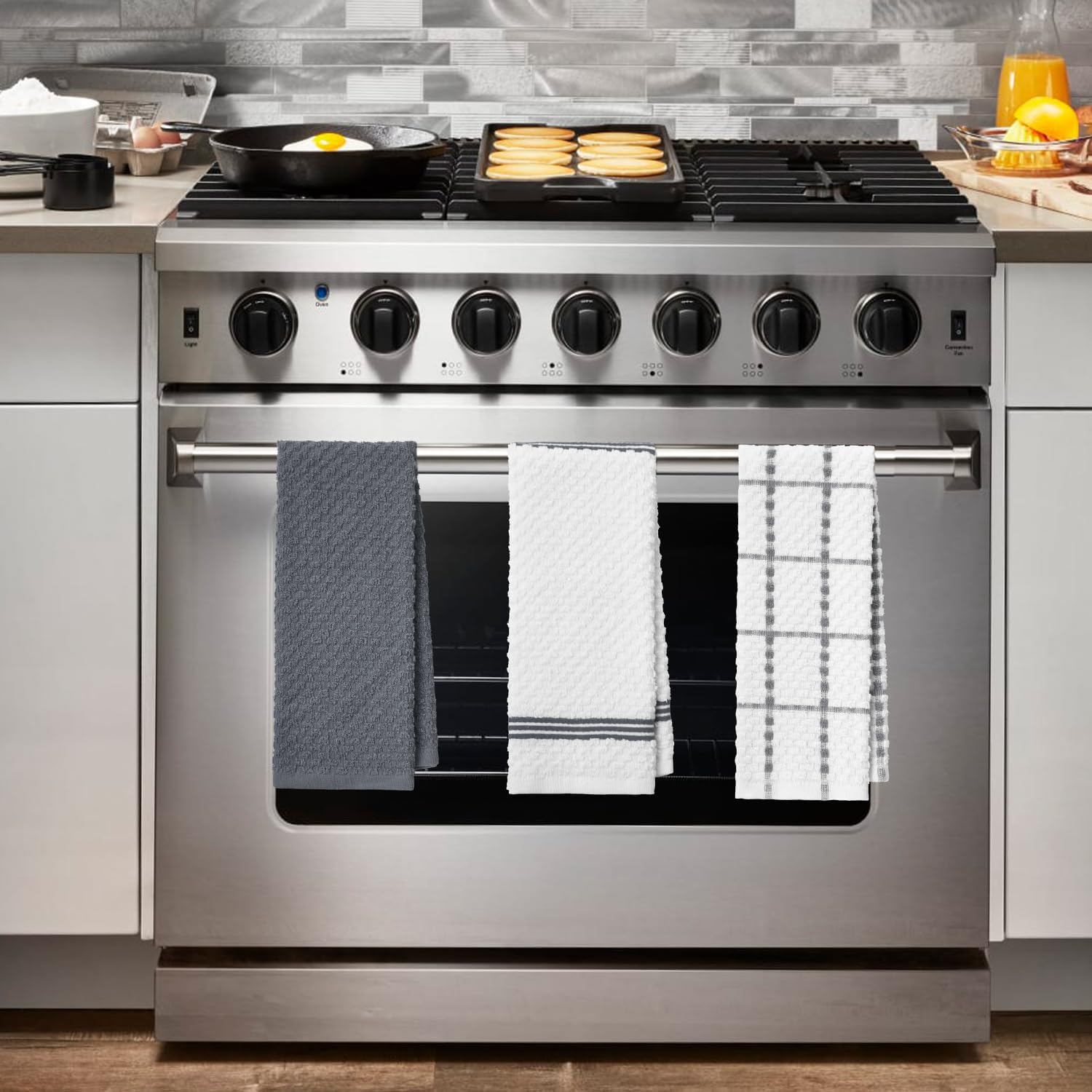 - VALUE PACK: Collection includes 6 cotton kitchen towels available in a variety of colors to coordinate with any kitchen décor. Measures 15 in x 25 in.