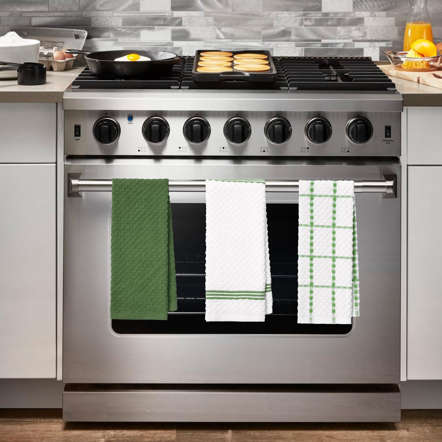 Artoid Mode Ring Spun Cotton Green Kitchen Dish Towels, 15x25 Inch Ultra Soft Absorbent Quick Drying Household Cleaning Tea Towels Bar Towels Set of 6