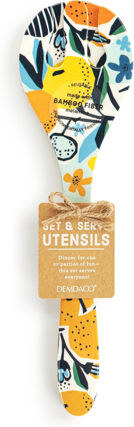 Demdaco Serving or Cooking Salad Spoon Utensil Set, 3 x 11 Inch Melamine, Citrus Blooms - Pack of 2