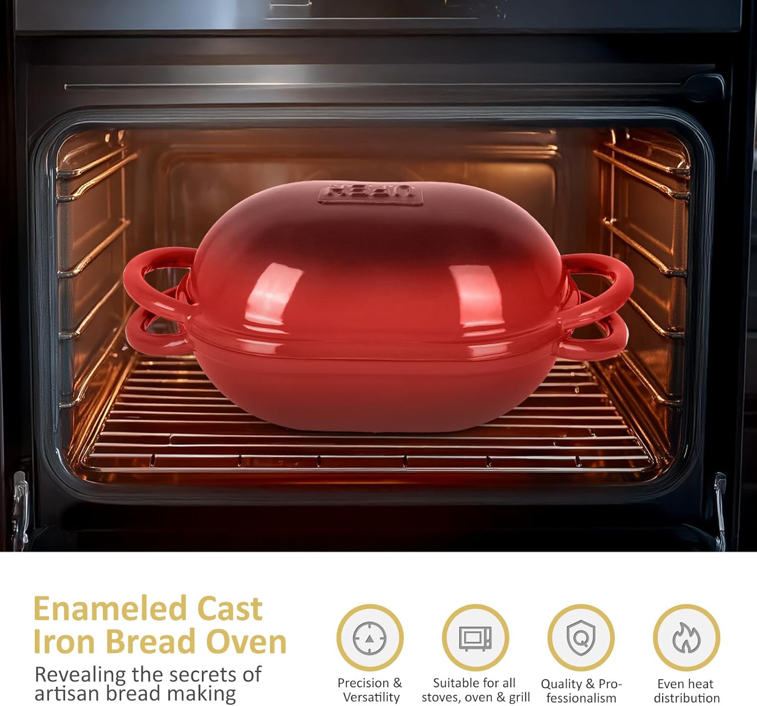 - Perfect Bread Every Time – Achieve a crispy crust and soft, airy interior just like artisan bakeries. The cast iron construction ensures even heat distribution for perfect sourdough, no-knead bread, and homemade loaves.