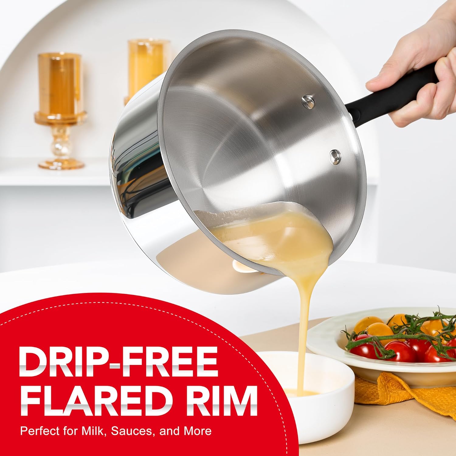- Easy Monitoring: The sauce pot set allows you to easily monitor your cooking progress through the clear, vented glass lid. No need to lift the lid and lose heat—just a quick peek to check on your food.