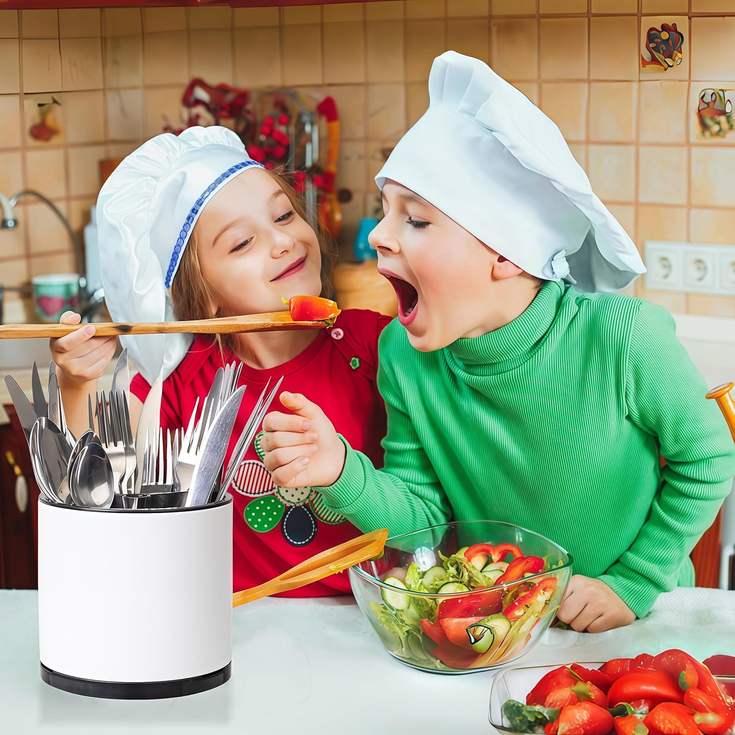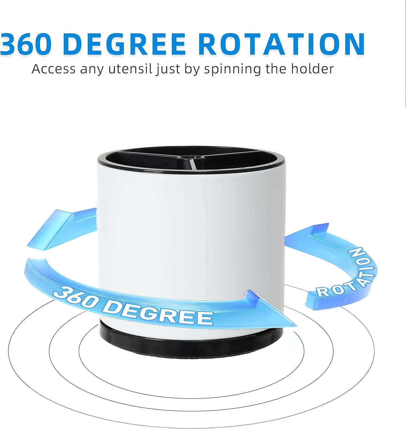 - Smooth 360° Rotation: Experience unparalleled convenience with our smooth-gliding, 360-degree rotation feature. Simply spin the holder to access any utensil you need, eliminating the frustration of searching through a tangled mess. This innovative design ensures that your utensils are always within easy reach, making your kitchen tasks more efficient and enjoyable.