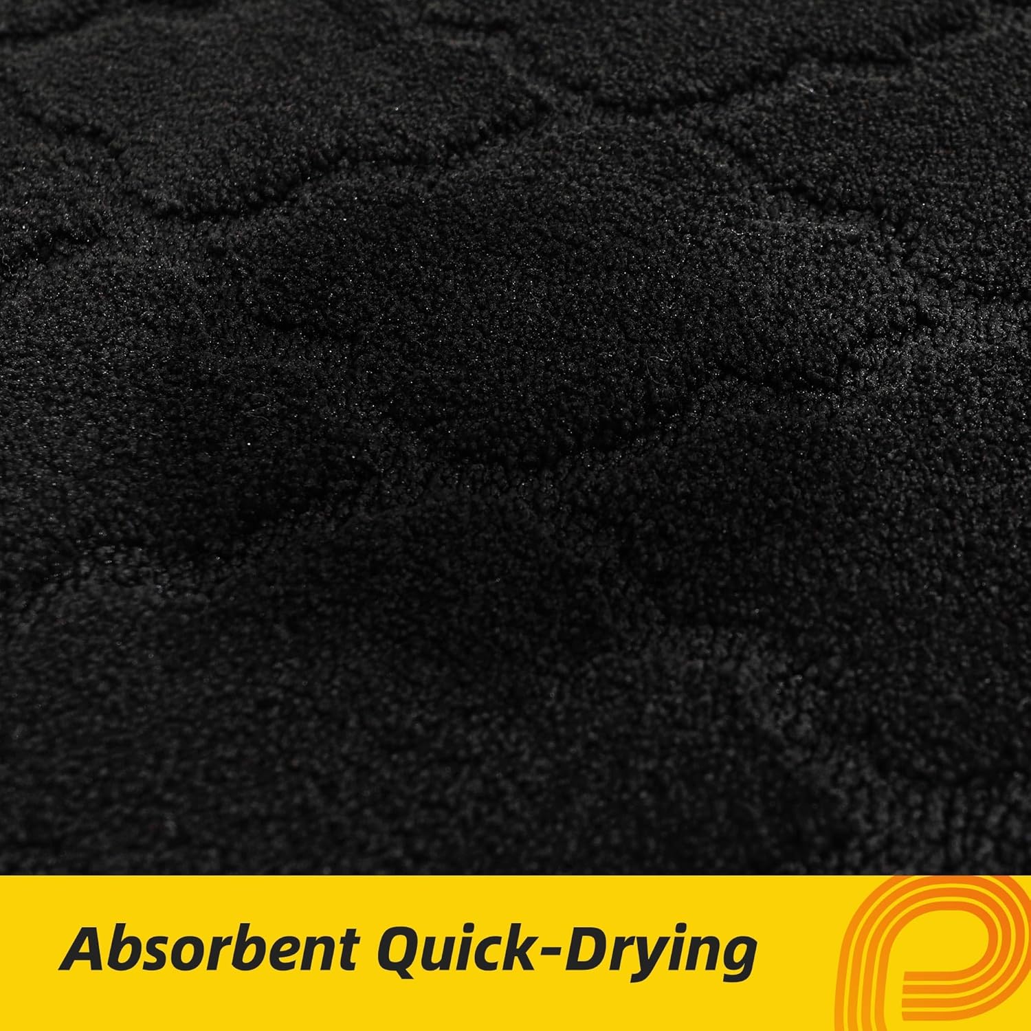 JSEI Kitchen Rugs, Non-Slip Kitchen Mats for Floor, Soft Washable Absorbent Kitchen Mats 2 Pieces, Kitchen Carpet Runner with TPR Backing, Polyester, 20”x32”+20”x48”, Black