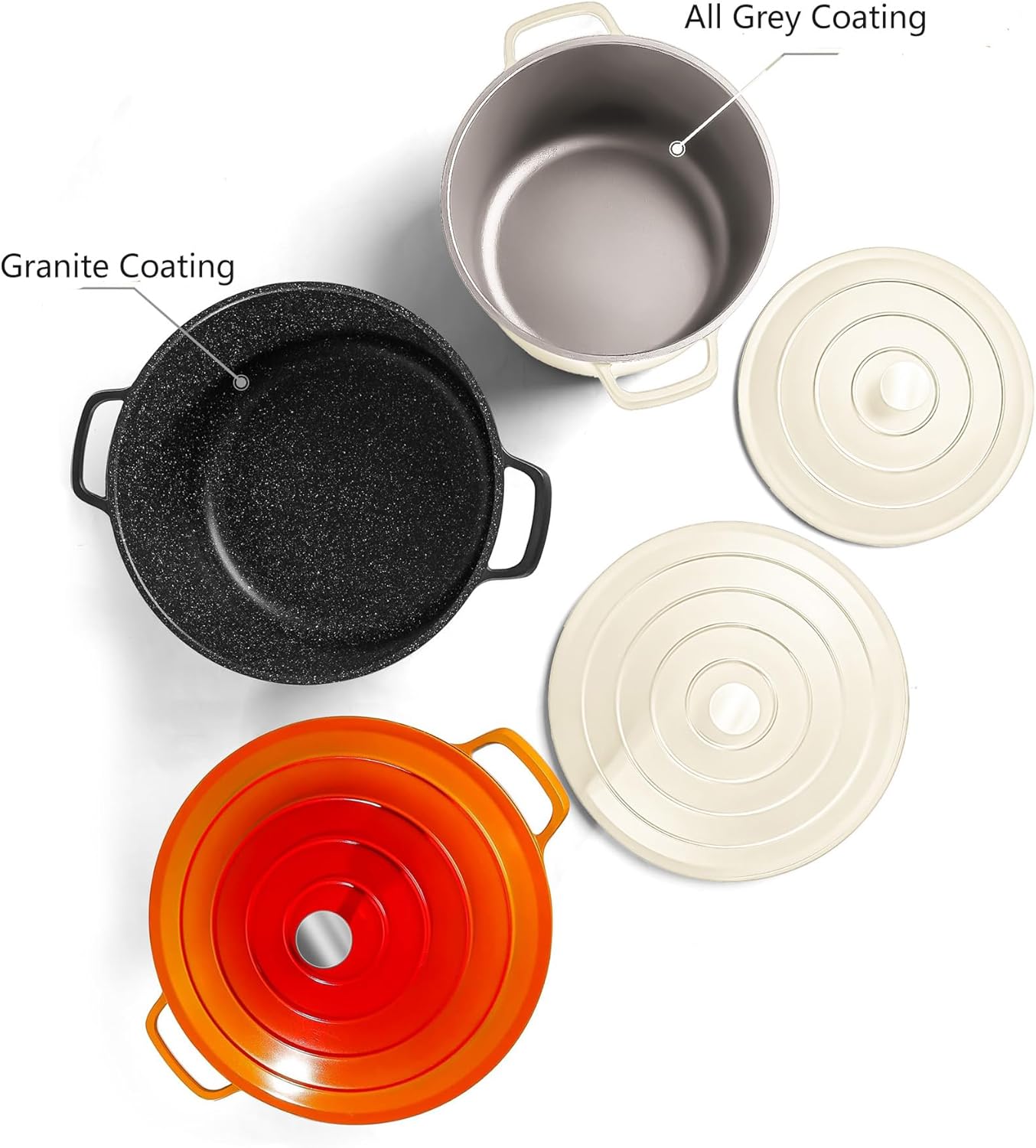 - Versatile and Multi-Purpose Cookware-This Cast aluminum dutch oven can meet all your cooking tasks, serving for dishes-from bread baking, braising to roasting. This is great for stir-fry, soups, stews and sauces as well. The functional all in one pan saves space, keeping the kitchen tidy.