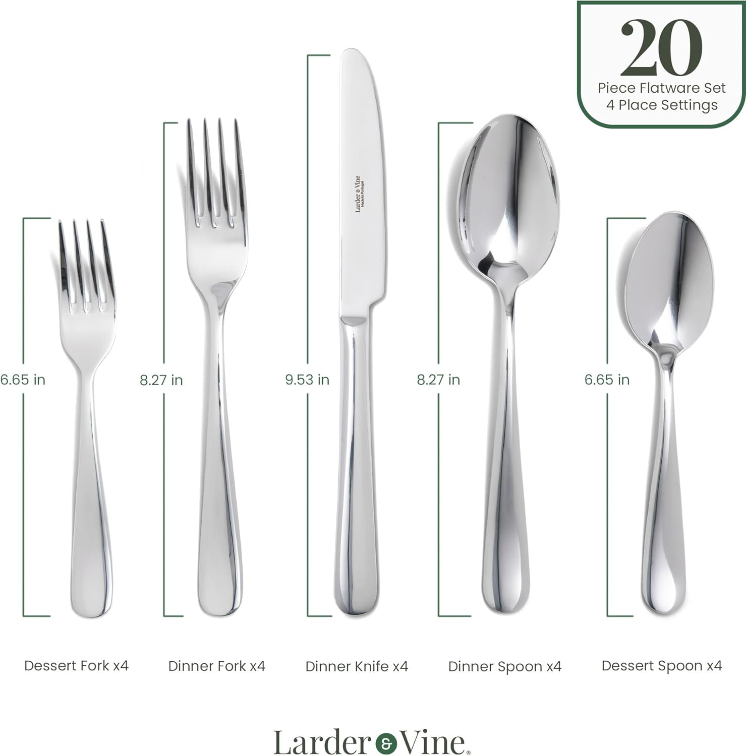 - Durable & High-Performing Materials: Crafted from premium 18/10 stainless steel, Larder & Vine flatware uses a special technique that enhances durability, resists corrosion, and maintains a spotless finish, ensuring long-lasting beauty and reliability for everyday use.