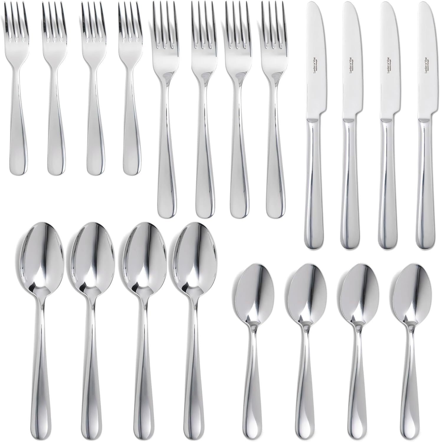 - Service for Four: This 20-piece flatware set includes four complete place settings, each with five elegant pieces, making it perfect for dining with family or guests.