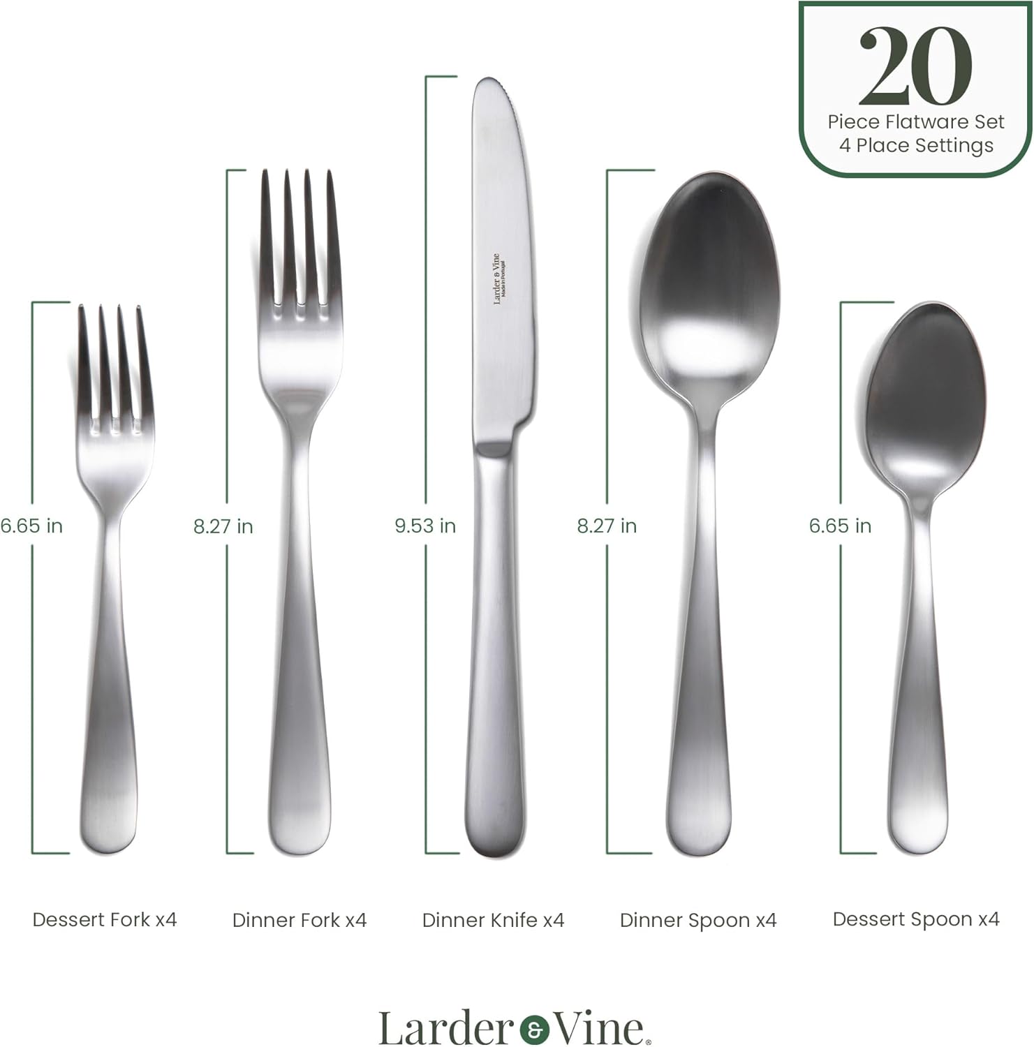 - Durable & High-Performing Materials: Crafted from premium 18/10 stainless steel, Larder & Vine flatware uses a special technique that enhances durability, resists corrosion, and maintains a spotless finish, ensuring long-lasting beauty and reliability for everyday use.