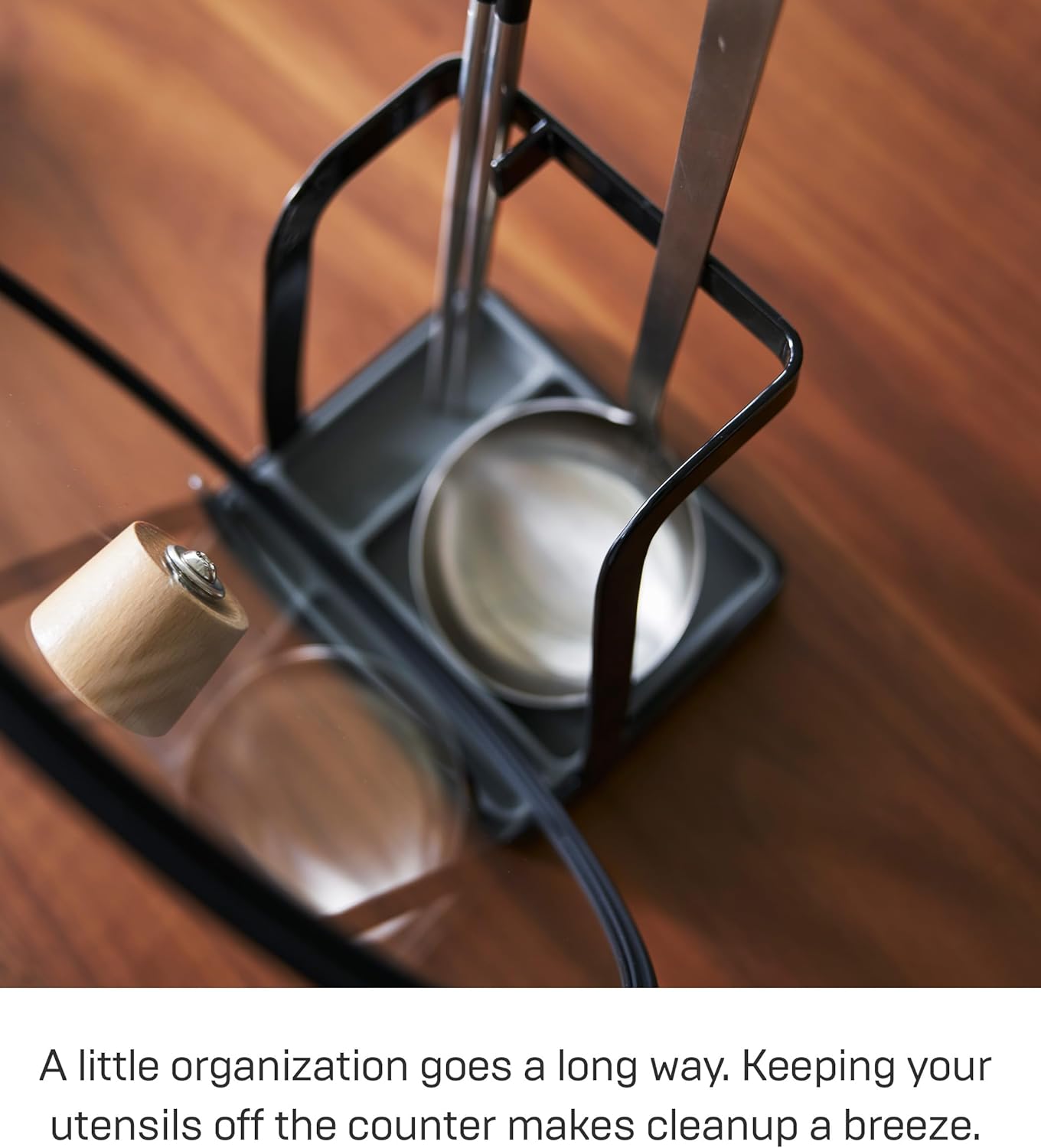 - [Keeps Your Utensils and Counter Clean] Protective rubber pads on the bottom protect your countertop and ensure cooking utensils stay isolated and upright, also preventing countertop damage.