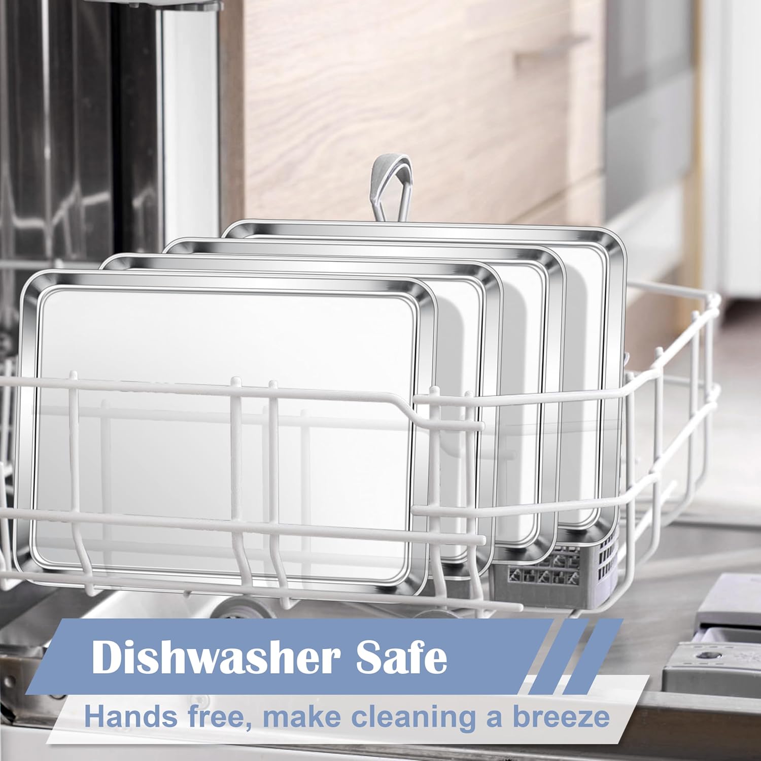 E-far Stainless Steel Baking Sheets Set of 4, 12.4” x9.7” Baking Cookie Sheets Pans for Oven, Non-toxic Metal Trays for Cake Cookies, Healthy & Rust Free, Mirror Finish & Dishwasher Safe