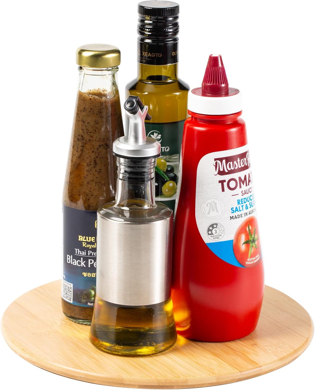 10 Inch Bamboo Wood Lazy Susan Organizer for Cabinet, HENABLE Lazy Susan Spice Rack Turntable Organizer for Pantry, Dining Table, Kitchen, Countertop, Cupboard, Refrigerator, Home Decor