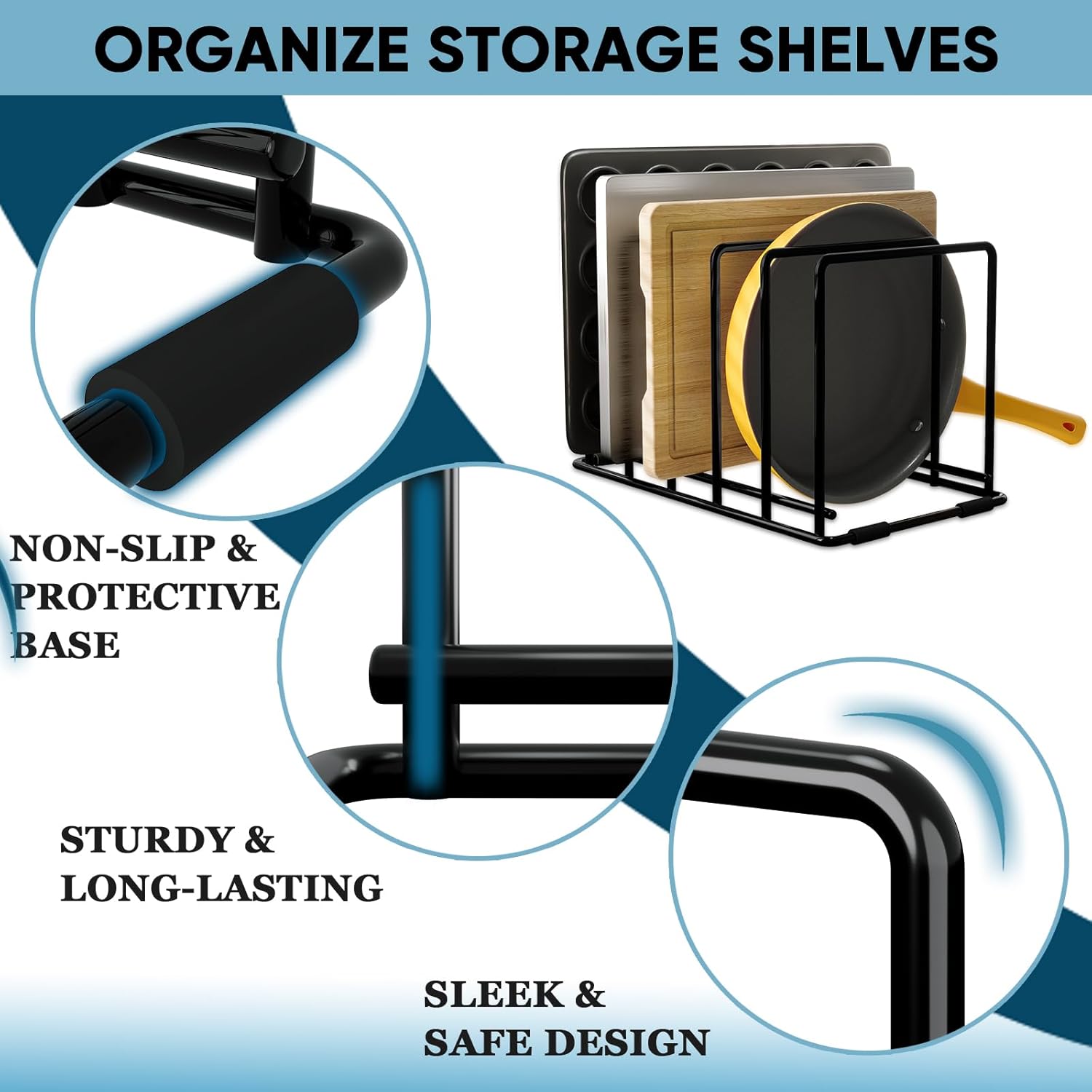 - ๐๐จ๐ฎ๐๐ฅ๐ ๐ญ๐ก๐ ๐๐ซ๐ ๐๐ง๐ข๐ณ๐๐ญ๐ข๐จ๐ง, ๐๐จ๐ฎ๐๐ฅ๐ ๐ญ๐ก๐ ๐๐๐ฅ๐ฎ๐! - Get two 5-slot organizers to declutter your kitchen! Perfect for cutting boards, baking trays, and thin pans, these racks keep everything neatly in place.