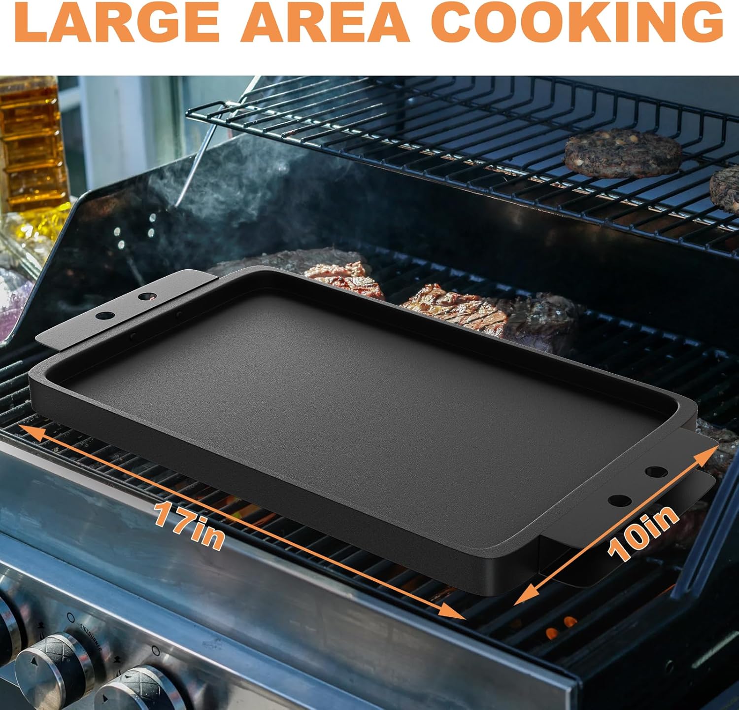 Grill Flat TopGriddle Universal, Cast Iron Griddle for Gas Grill, 17" x 10" Stovetop Griddle, GriddlePan for Stove Top, GrillGriddle for Charcoal/Electric/Gas Grills, Stove, Tailgating, Camping