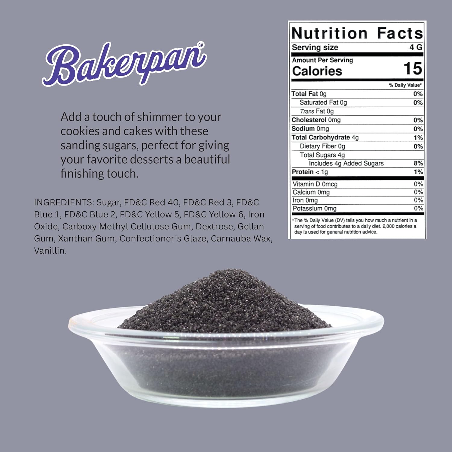 Bakerpan Black Sanding Sugar for Baking & Cookie Decorating - 5 Ounce Edible Black Sugar Sprinkles for Cookies, Cakes, Cocktails (Made In USA)